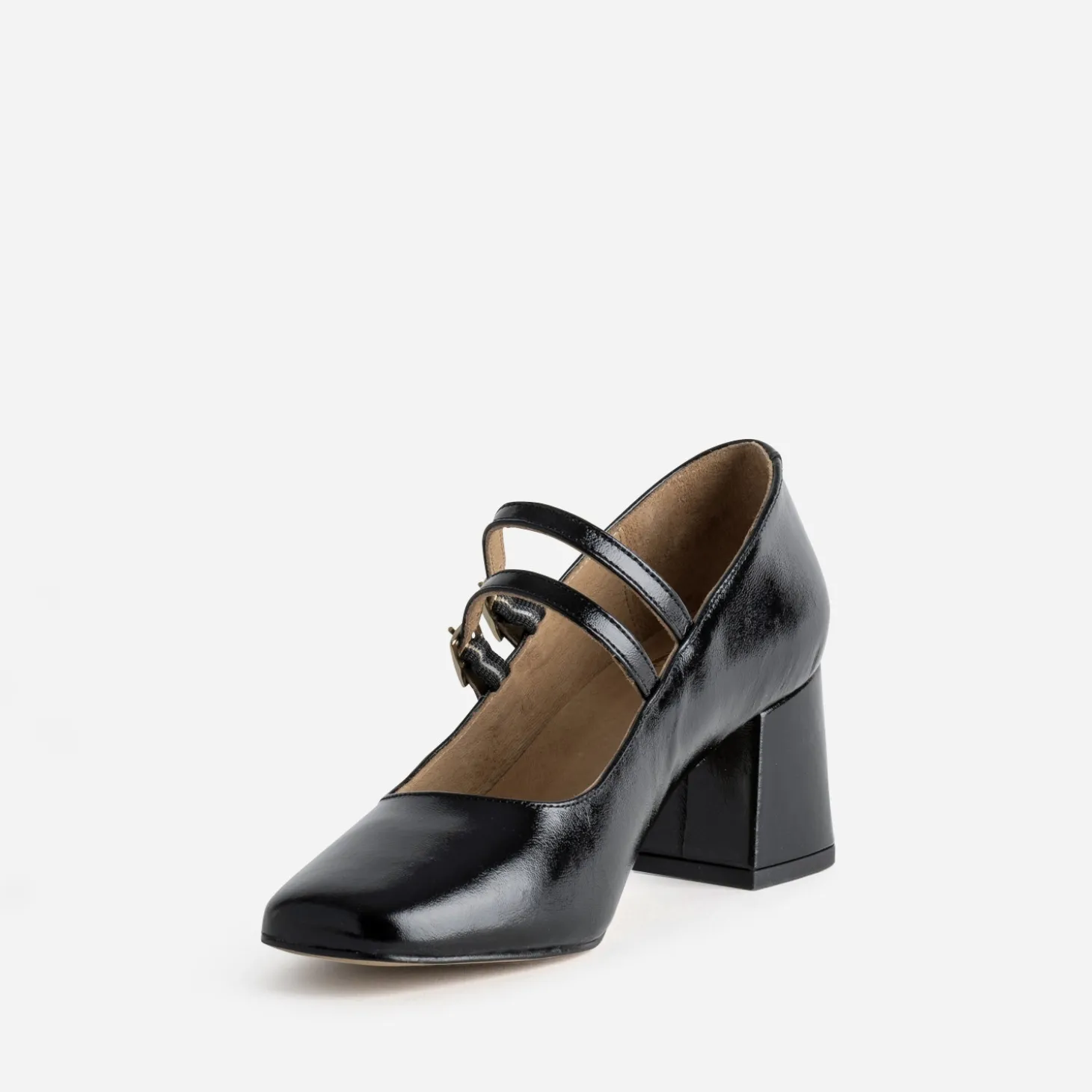 La mode, un éternel recommencement qui se confirme par le retour en force de la babies. Confectionnée en cuir noir, elle s’autorise une finition glacée jusqu’à la pointe de son talon carré, légèrement flare. Le pied est maintenu par deux fines brides parallèles, fermées par des boucles. Un modèle idéal, pour twister une blouse et un jean cropped, dans un esprit rétro.
