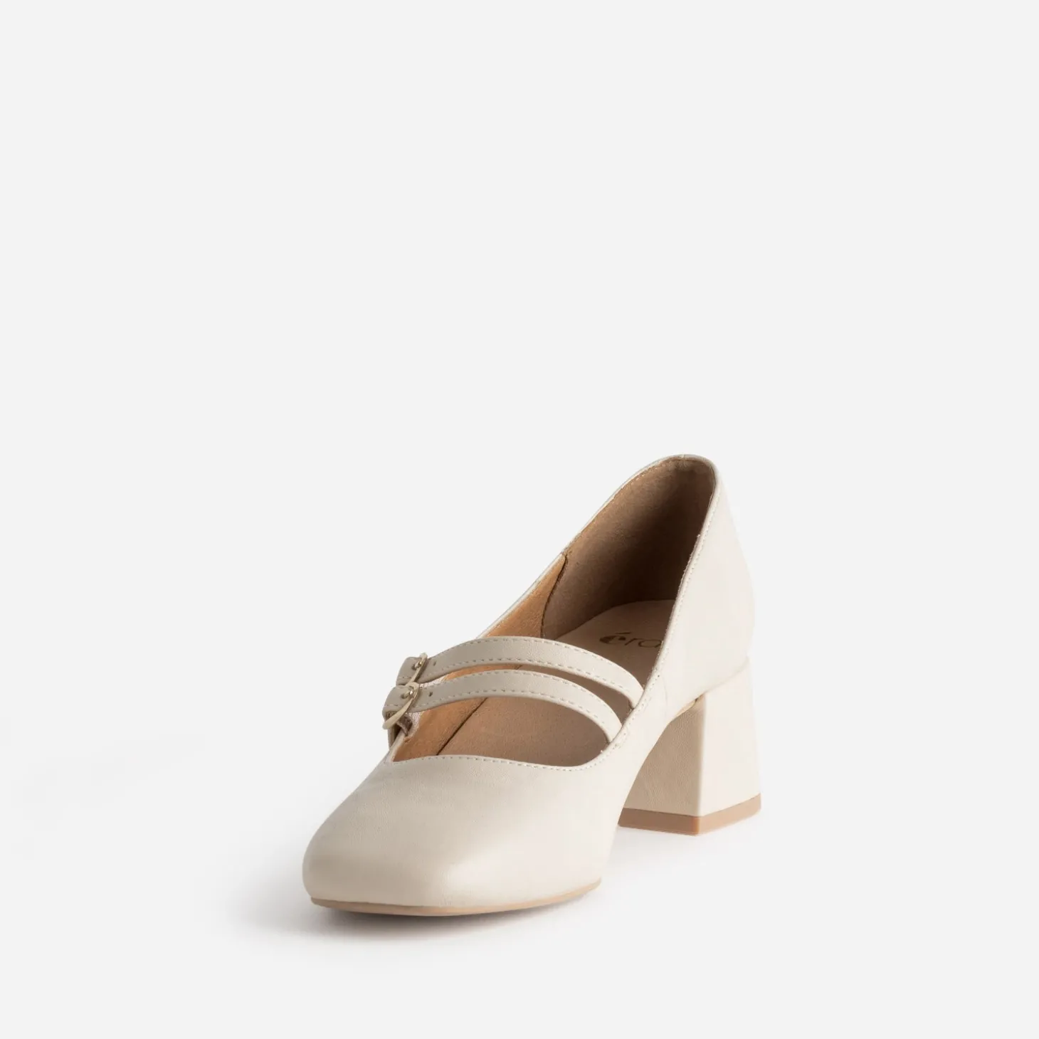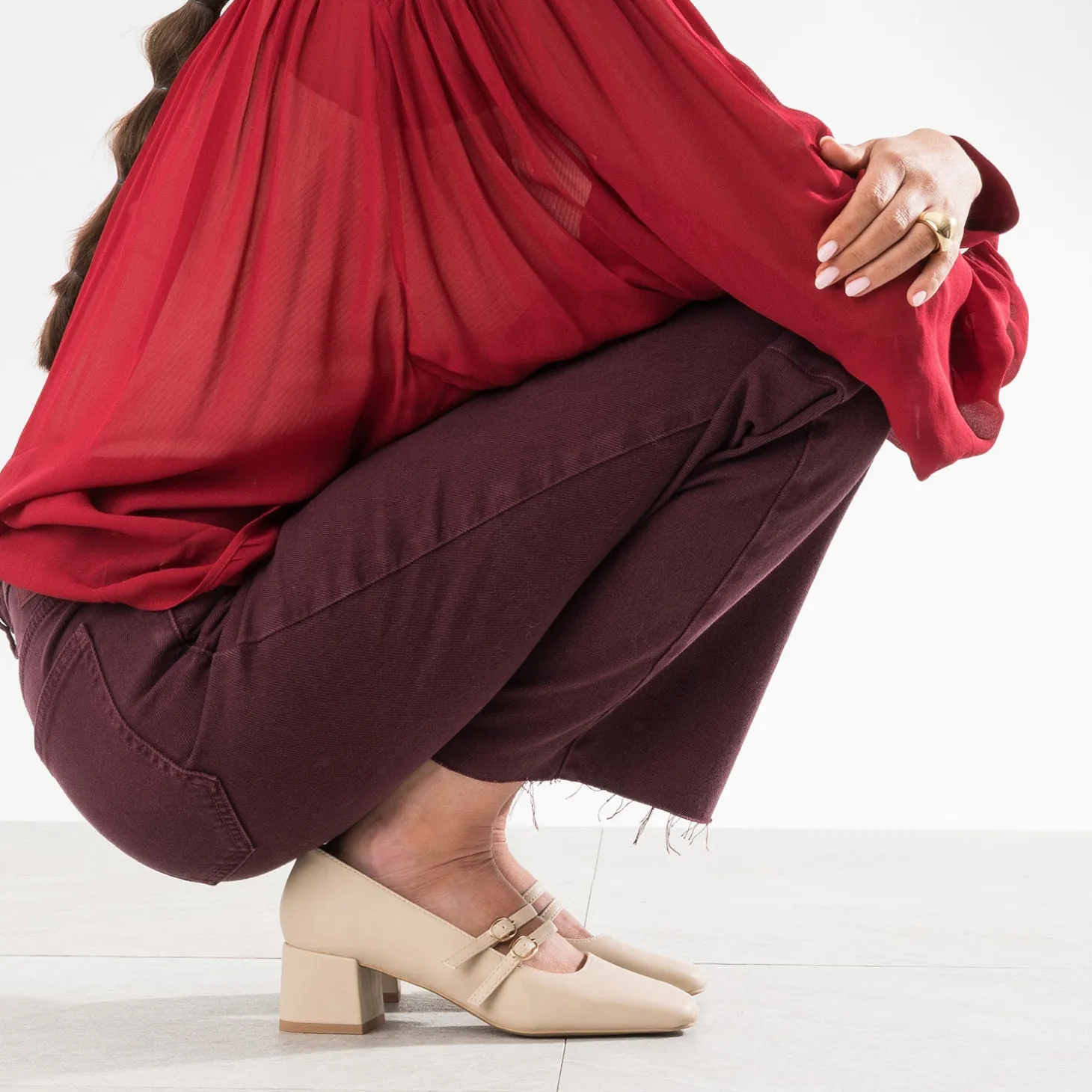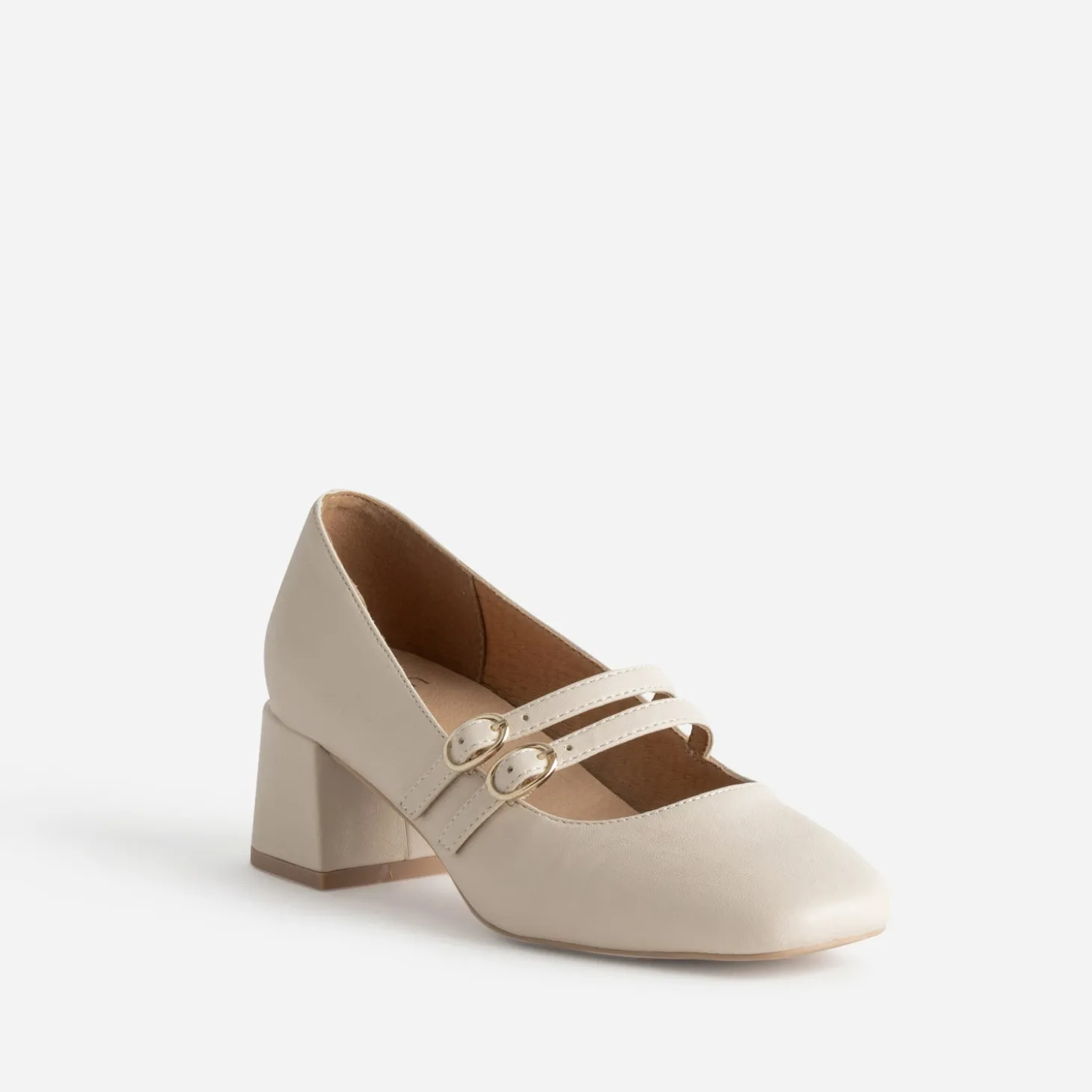 Bout carré, petit talon carré, double bride parallèle : laissez-vous tenter par l’esprit rétro revisité de la babies, grande tendance de la saison. En matière synthétique lisse et mate, elle se décline en coloris beige nude, plus facile à adapter à vos looks du quotidien. Un modèle à décaler avec des collants en dentelle, des socquettes blanches, un jean cropped.
