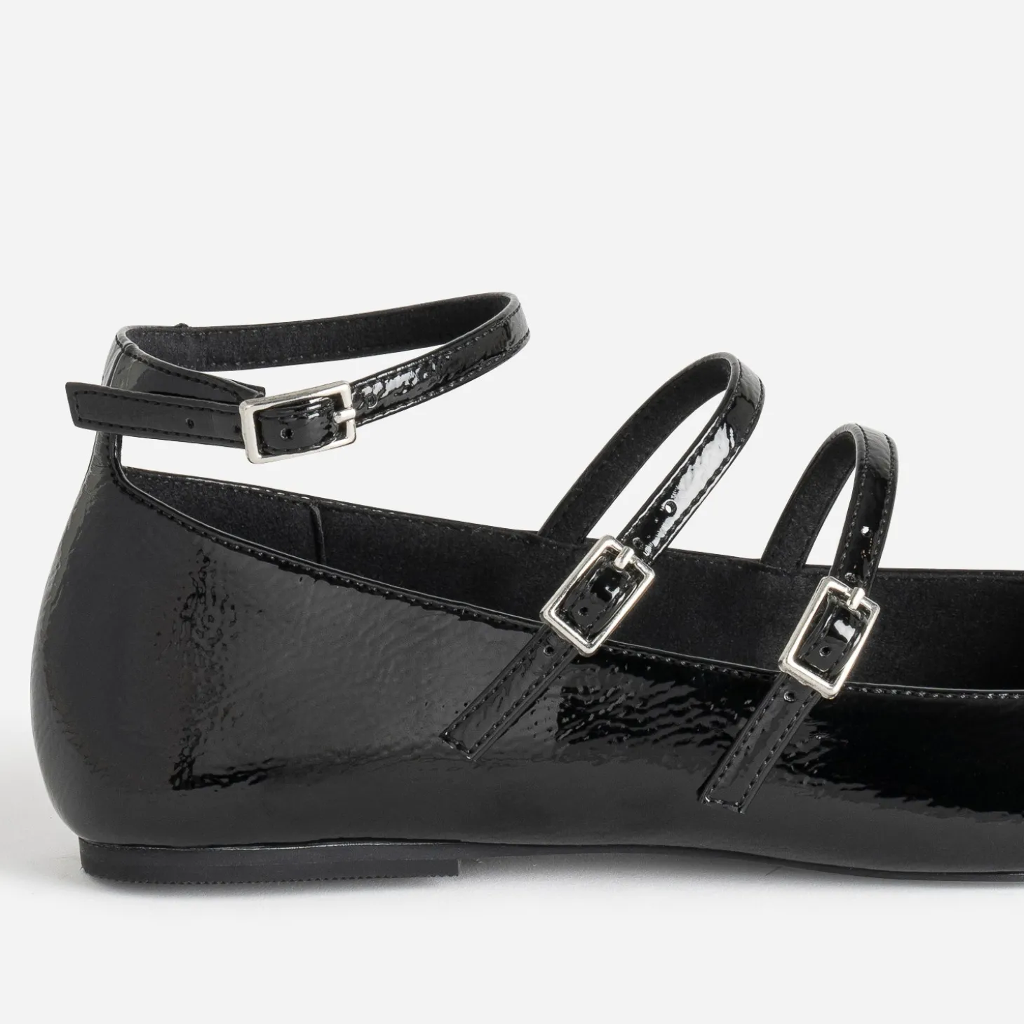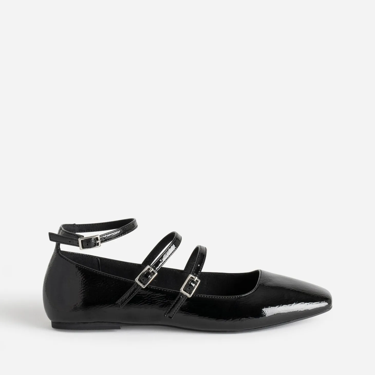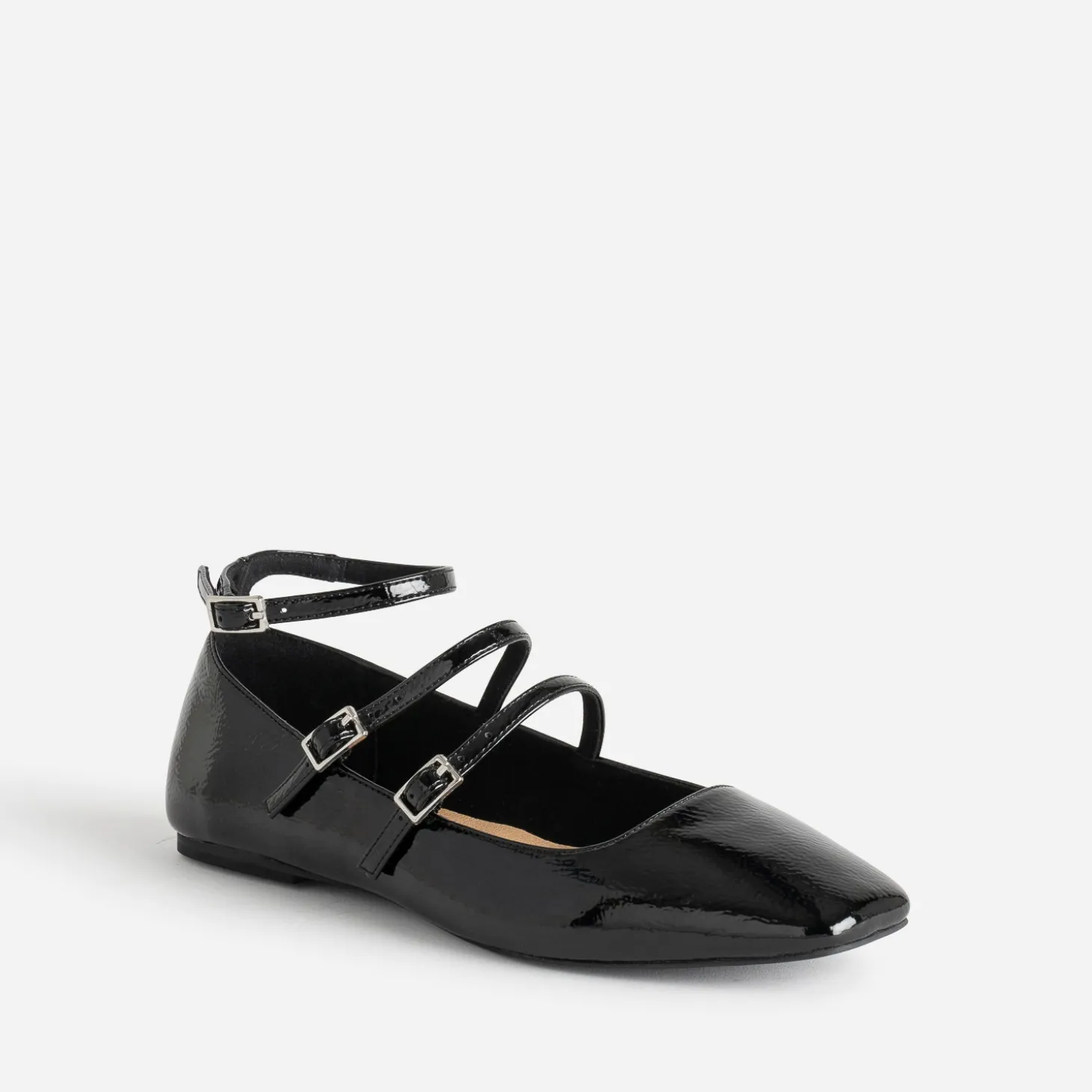 1, 2, 3 brides pour cette babies pour femme. Elle célèbre le retour du plat, avec style et élégance. Par son bout carré, par son coloris noir, par sa finition vernie. Vous hésitez ? Elle sera votre meilleure alliée, de jour comme de nuit. Un modèle qui a déjà fait ses preuves, avec un body et une jupe midi satinée, ou plus inattendu, avec un blouson esprit motard et un legging en cuir.