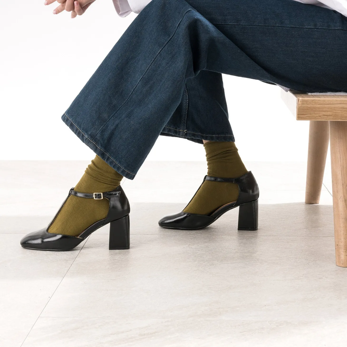 Bout et talon carrés, coloris noir et finition glacée : impossible de résister devant ce babies forme salomé. Identifiable à sa bride en T, il sublime le pied et offre, aux tenues féminines, un twist rétro chic. Blouse lavallière écrue et jupe crayon gris anthracite pour aller au bureau, pull à encolure V et pantalon flare en total look monochrome bleu marine ou bordeaux pour sortir entre amies, son atout, c’est indiscutablement, sa grande adaptabilité et sa semelle première moussée.