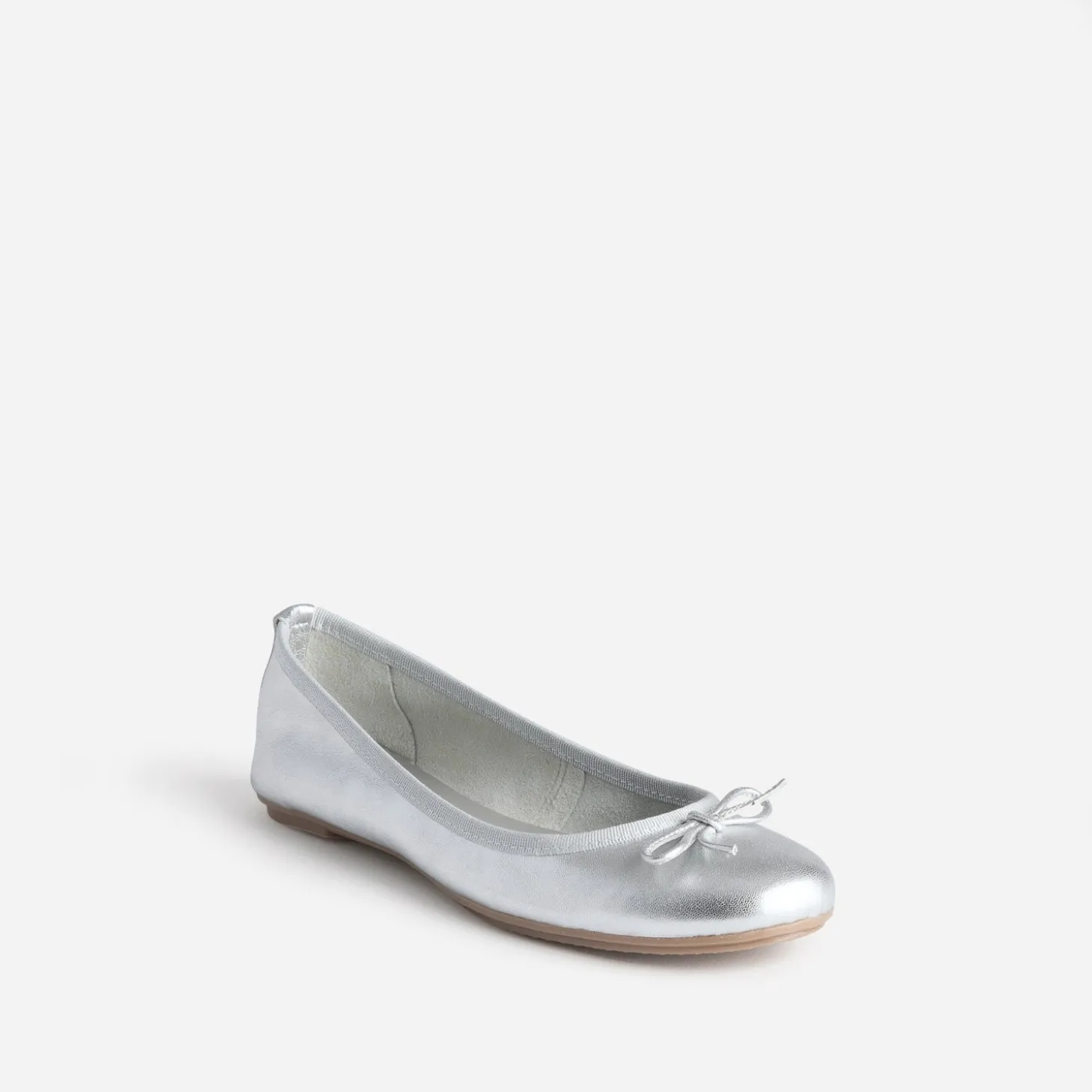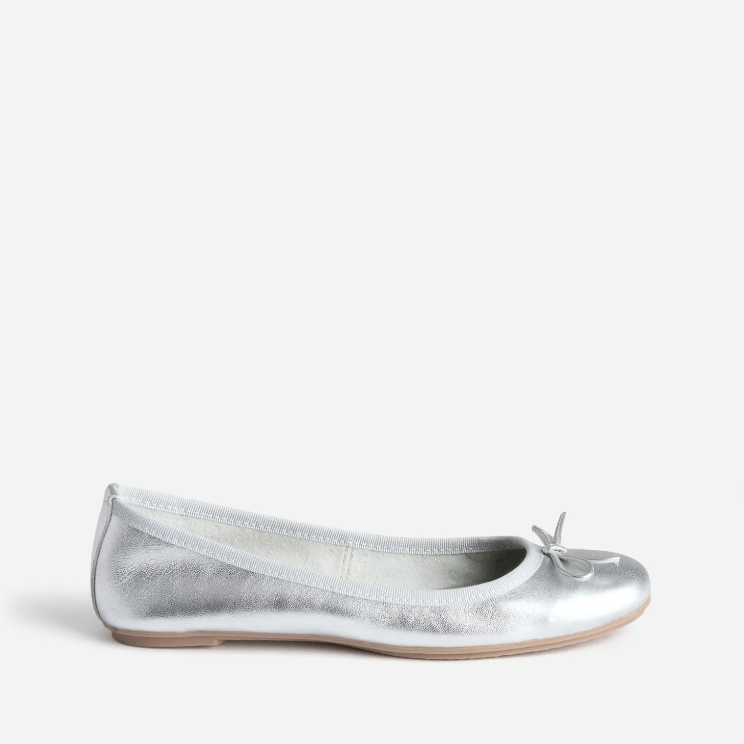 Ballerine argentée en cuir à petit nœud