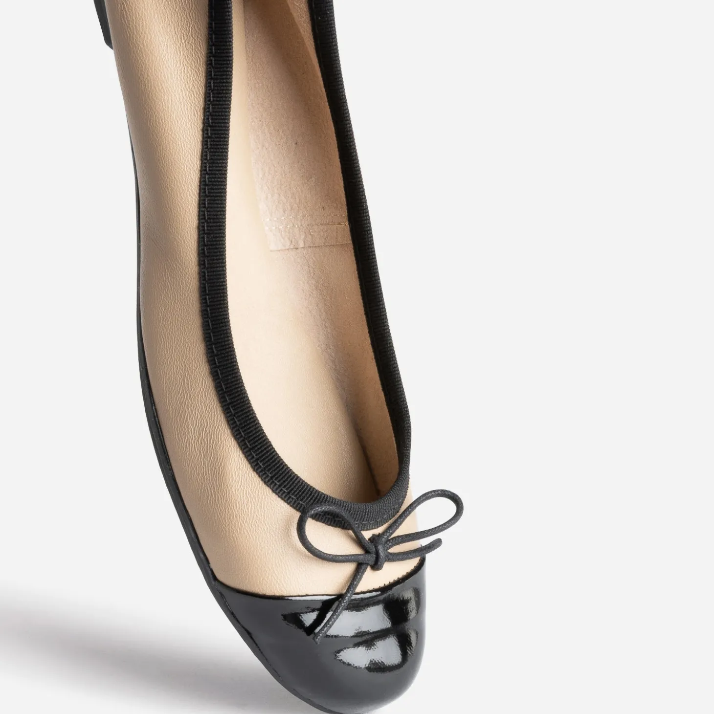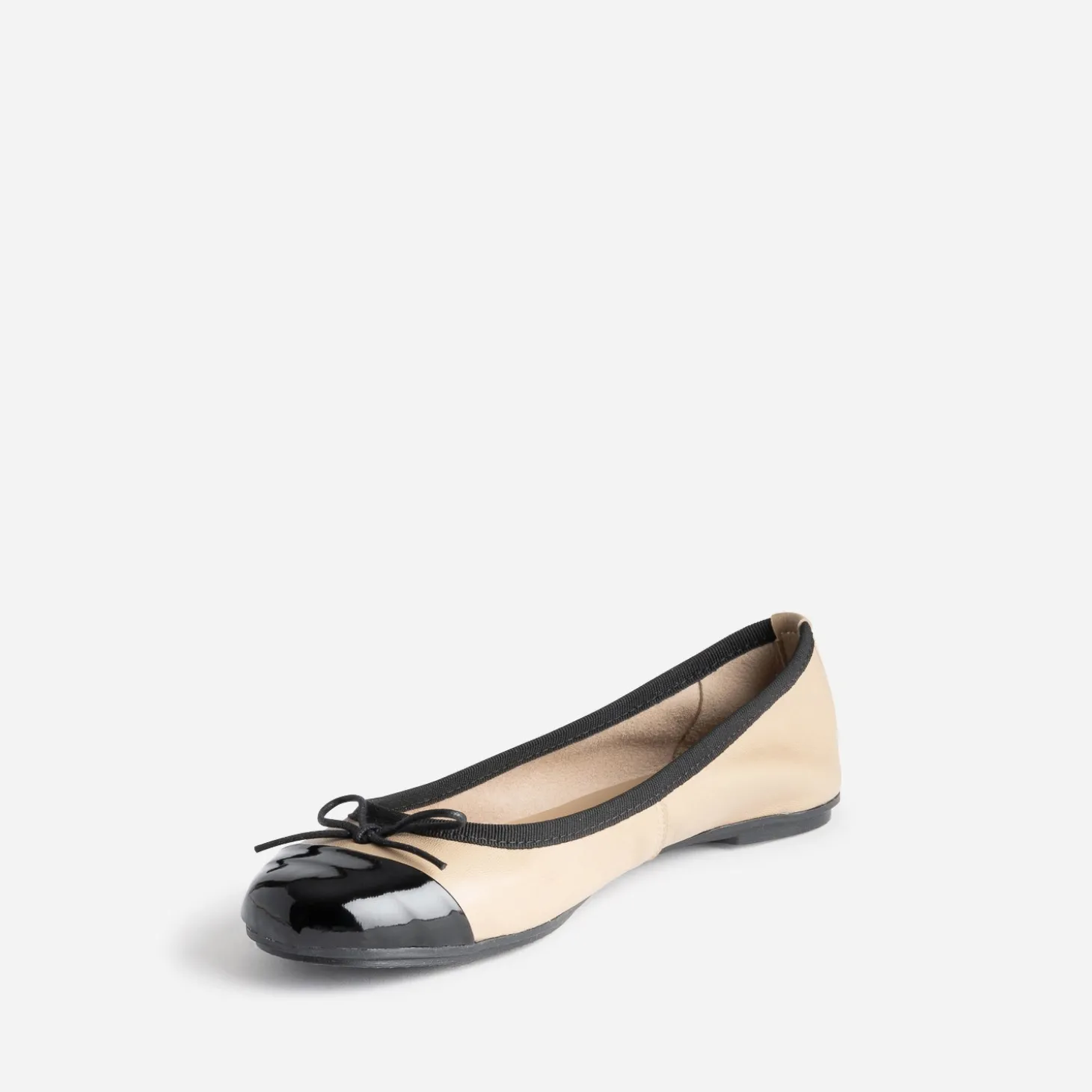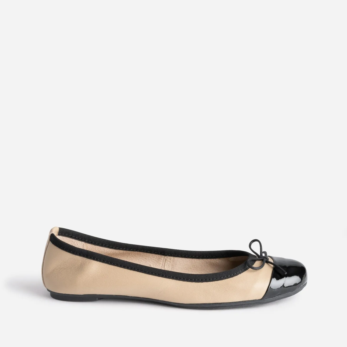 Ballerine beige en cuir à petit nœud