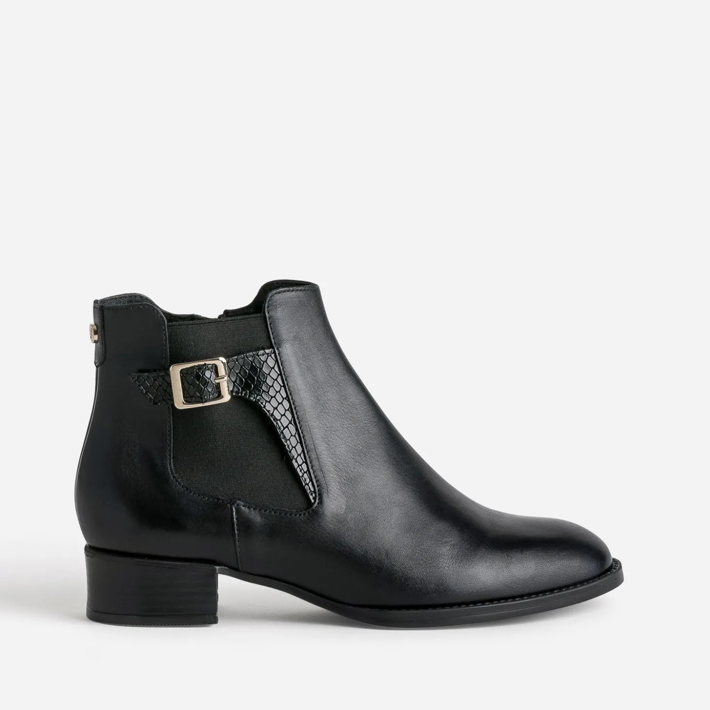 Modèle essentiel du shoesing, le boots plat séduit par son élégance innée. En cuir lisse noir, il multiplie les détails pour gagner en valeur ajoutée : élastique latéral, patte en cuir embossé effet python, zip intérieur, talon décroché, semelle première amovible. Ses propriétés d’amorti, de respirabilité et de durabilité ne sont plus à prouver. Un modèle intemporel, pensé pour durer dans le temps.