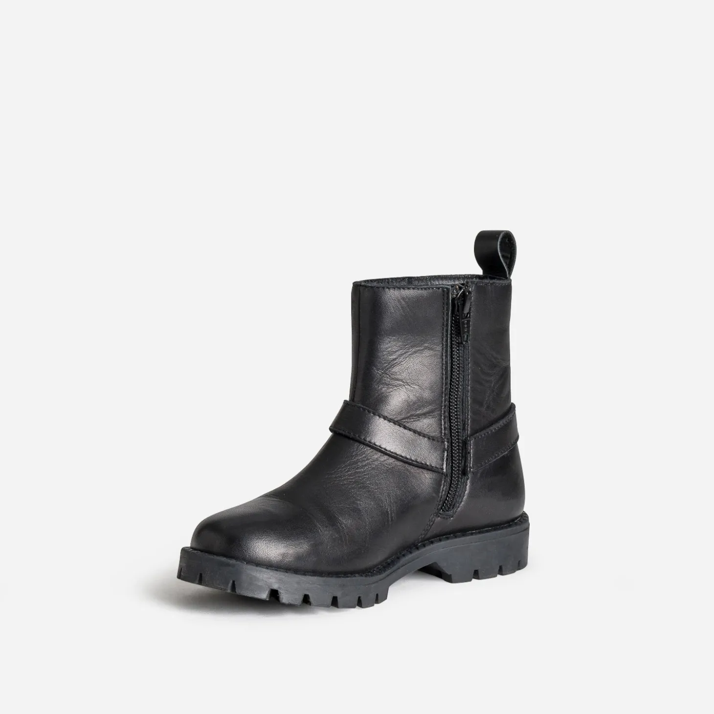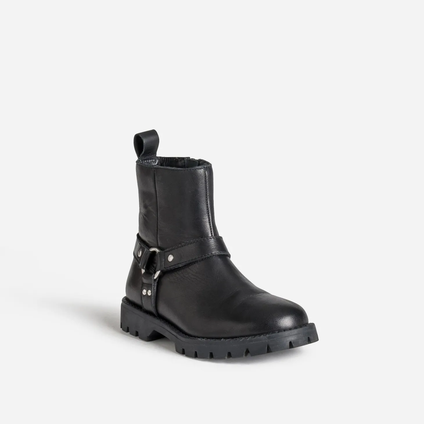 Le boots esprit motard a encore de beaux jours devant lui. En cuir noir, il est indentifiable à sa bride cheville, maintenue par un anneau et décorée de clous. Elle se ferme par un zip et est montée sur une semelle crantée. Un modèle toujours plus rock, à associer avec un pull chaussette sur un jean slim ou une jupe plissée longueur midi.