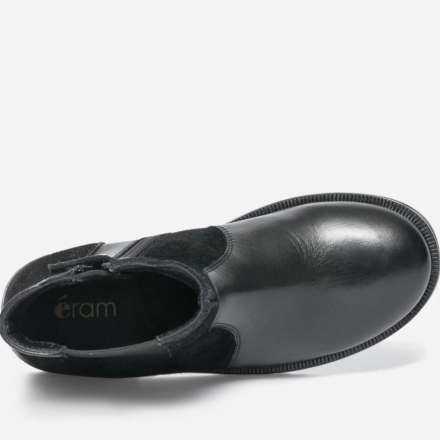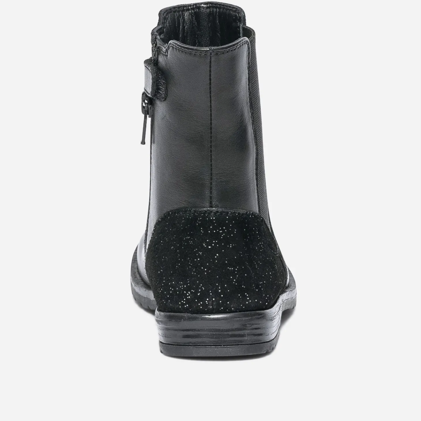 Pieds mini, style maxi. Mix de cuir et cuir velours noirs, ce boots fille se laisse twister d’un empiècement irisé sur le contrefort. Elastique d’un côté, zip intérieur de l’autre côté, il s’enfile facilement. Un modèle idéal pour faire le show dès la rentrée !