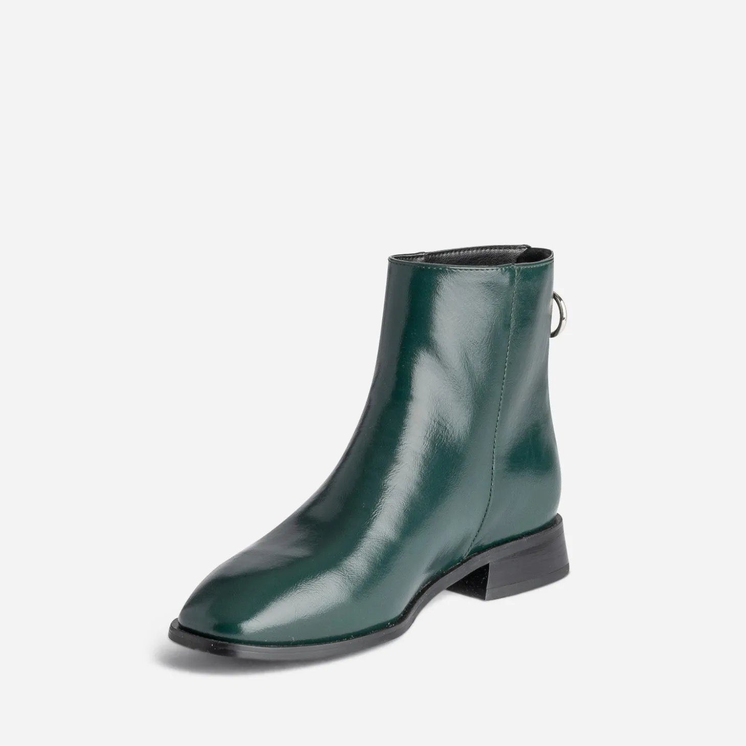 Finition glacée pour une brillance maîtrisée. Bout carré et talon décroché forme flare pour plus de modernité. Fermeture par zip à l’arrière du pied pour une belle originalité. Coloris vert foncé, pile dans la tendance. Ce boots femme est un véritable coup de cœur de la saison, à porter, avec tout, sans modération.