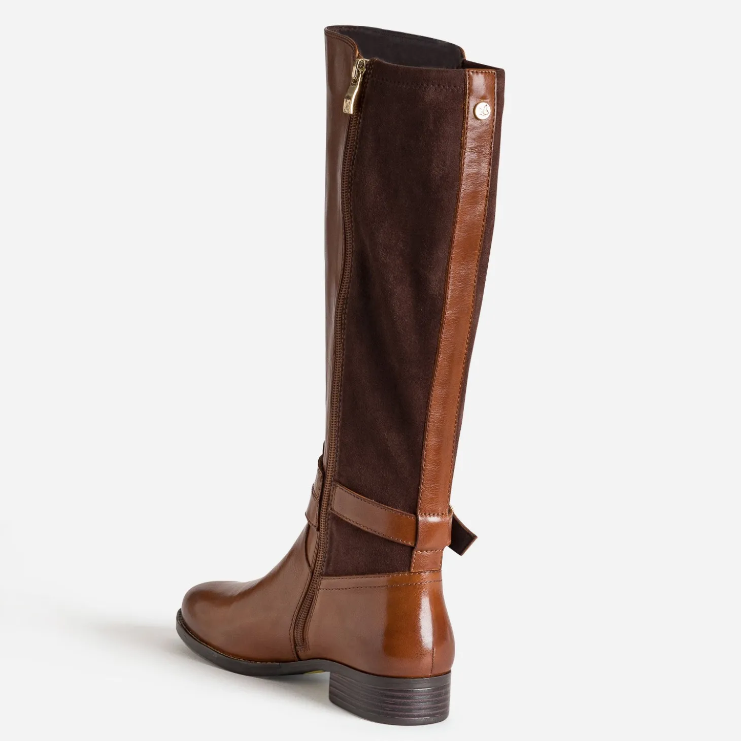 La botte bi-matière pour femme revient sur le devant de la scène mode. La tige haute associe cuir lisse cognac et textile suédée extensible marron, gagnant une aisance évidente. Inspiration jodhpur, elle présente une double bride à la cheville et se ferme par un zip intérieur. Montée sur une semelle dotée de la technologie ‘onAIR’, elle promet un meilleur amorti et une aération optimale. Un modèle féminin, à porter en journée et en soirée, avec vos robes et jupes du quotidien.