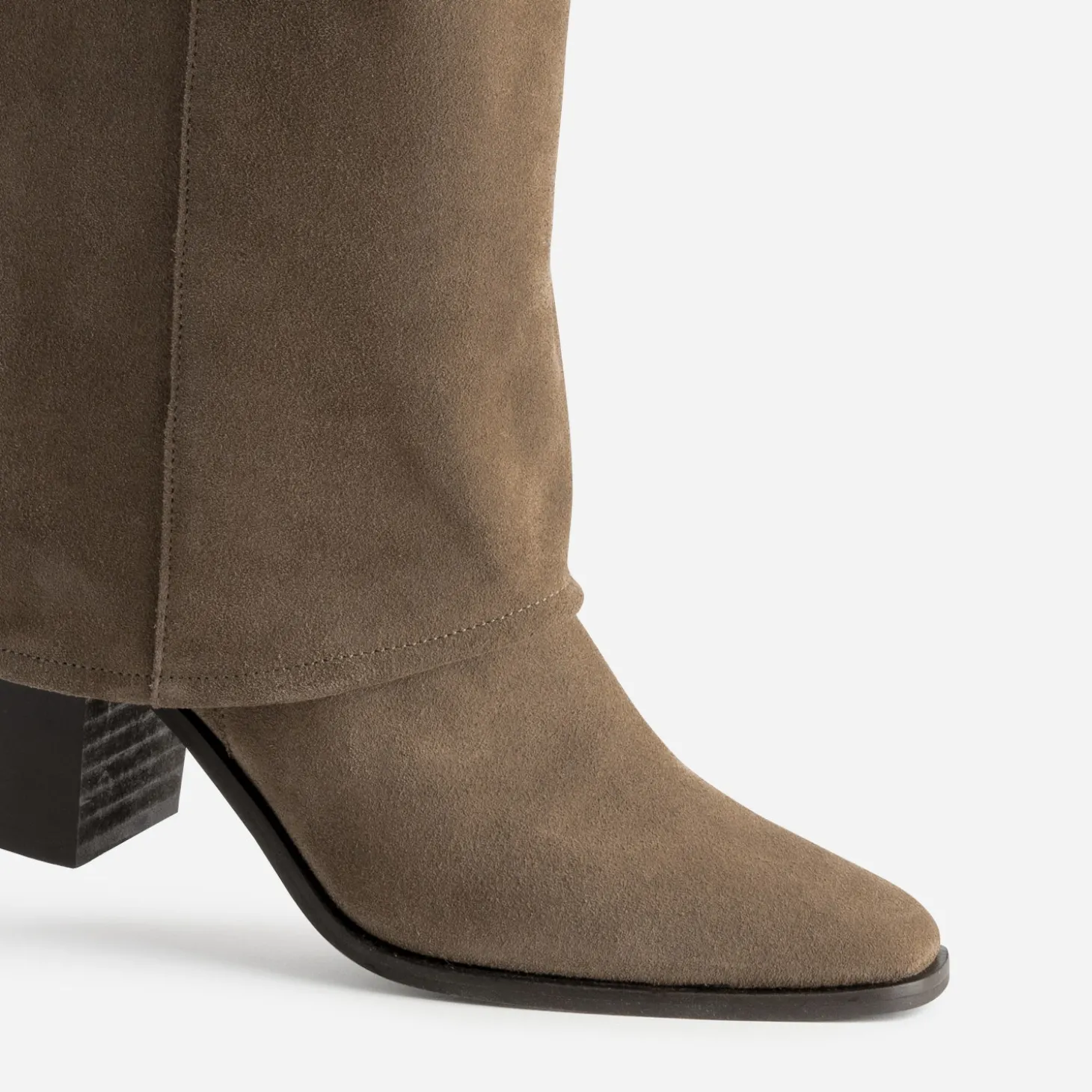 Affirmez votre différence avec la botte fourreau. En cuir velours, elle se décline en coloris taupe, entre le beige et le gris et se repère à sa tige recouverte. Bout pointu et talon 7,5 cm, elle finalise les looks d’une touche banchée ultra désirable. Un modèle à tester avec un pull beige et une mini jupe en cuir velours marron.