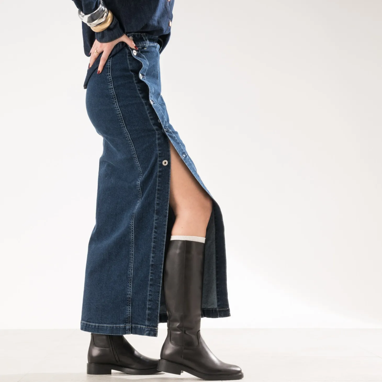 Un design minimaliste. Un coloris minimaliste. Une matière lisse. Un talon plat. C’est LA botte que vous allez adorer porter toute la saison, et toutes les suivantes. En cuir noir, elle se ferme par un zip qui court sur toute la hauteur du mollet. Un modèle prêt à s’élever au rang de must-have, quand vous l’aurez validé avec une robe courte, midi ou longue, avec une jupe patineuse ou portefeuille, avec un pantalon skinny ou un leggings.