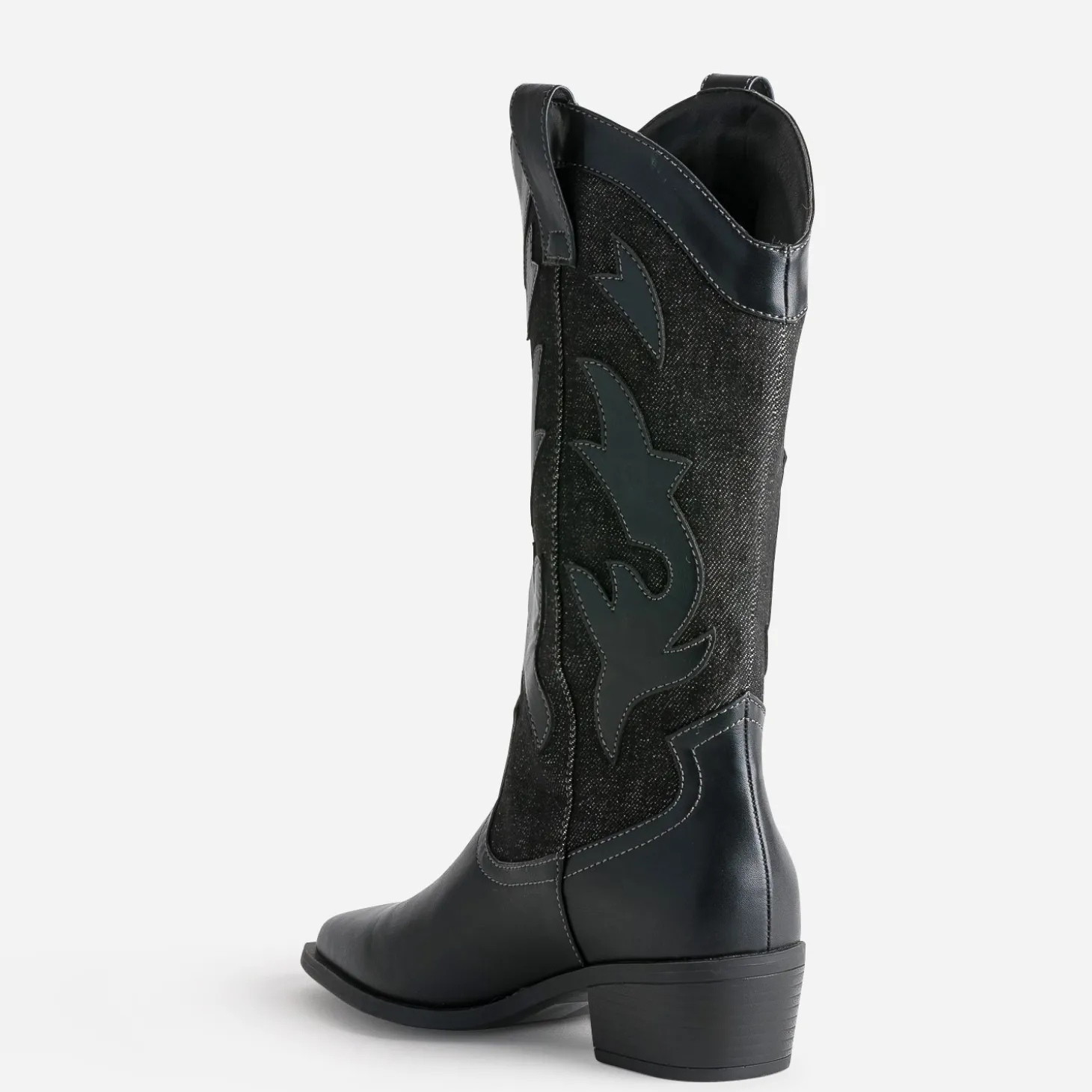 Rythmée de surpiqûres spécifiques, sur le dessus du pied et sur la tige, cette botte pour femme s’inspire clairement de la santiag. Bout pointu, talon bottier, elle s’enfile et se retire en une seconde. En textile façon denim, elle s’autorise une déclinaison grise et noire. Avec une chemise en jean, avec une jupe courte ou un slim, elle assure une touche rock, sans précédent.