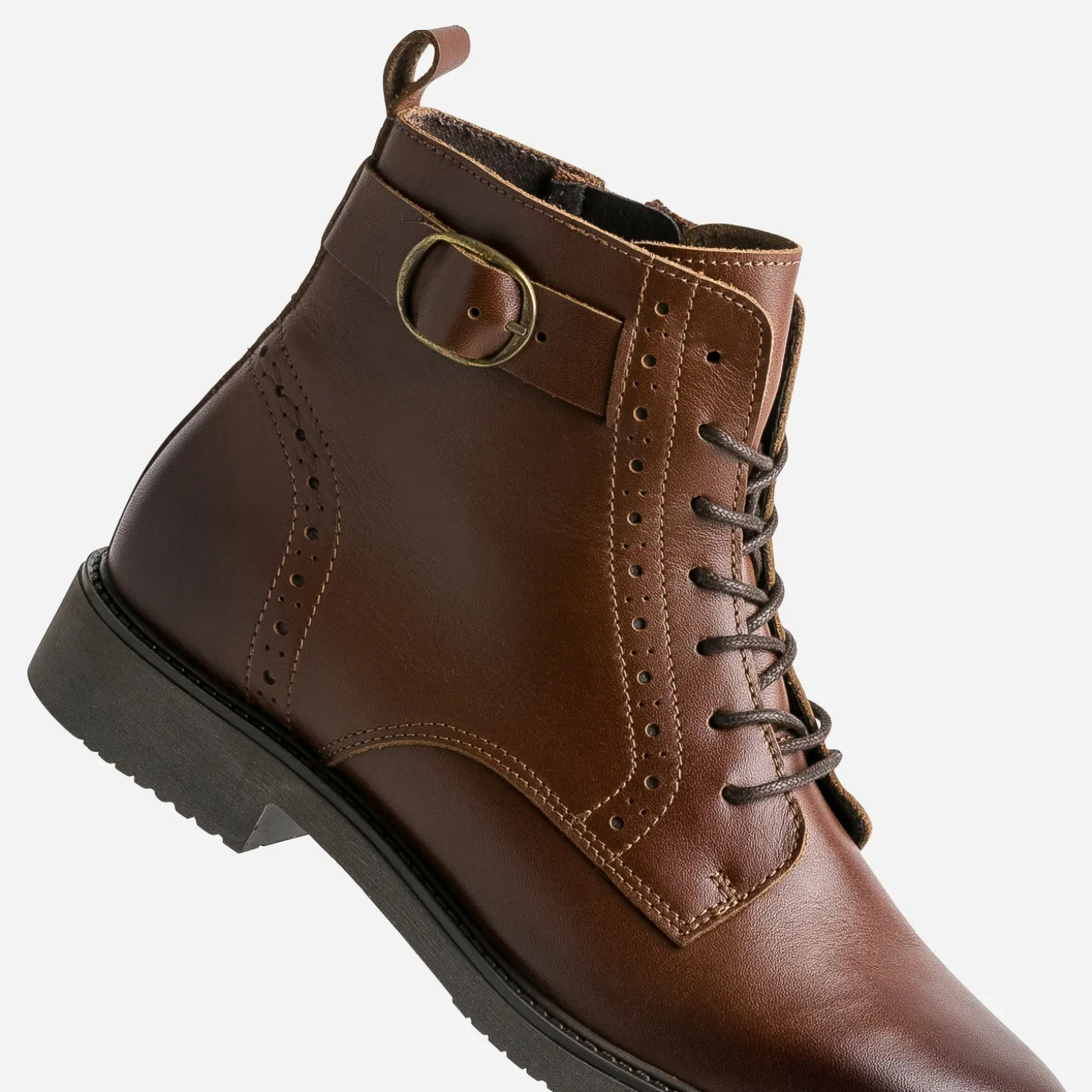 La saison est marquée par le retour du cuir en premier plan, à porter comme une seconde peau. La bottine n’y échappe pas ! En cuir lisse, elle opte pour un coloris cognac, intemporel, et des détails de perforations sur la patte de laçage et le contrefort. Le zip intérieur facilite l’entrée et la sortie du pied. Un modèle à privilégier avec un blouson aviateur, un pull chaussettes, une jupe midi en cuir et des chaussettes hautes.