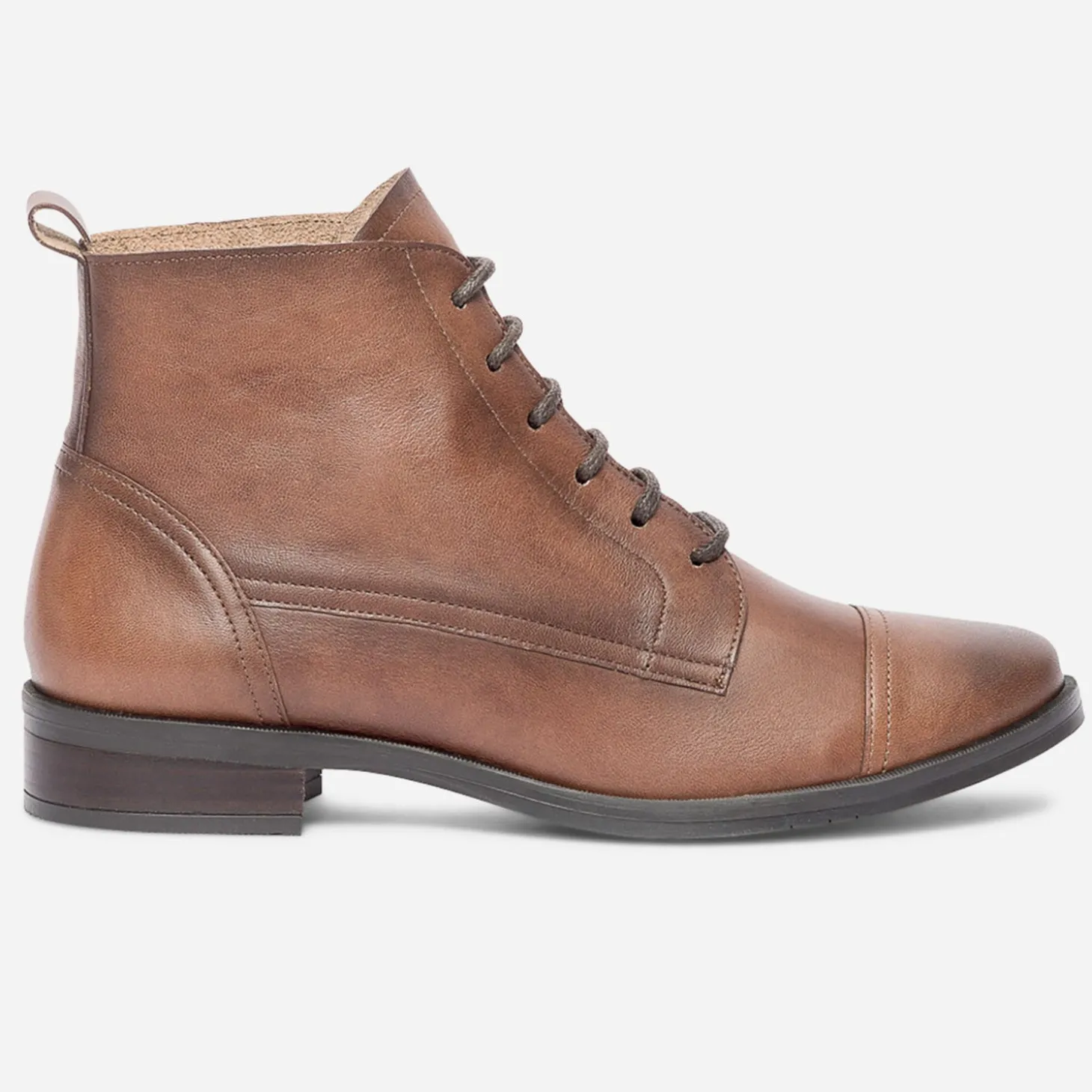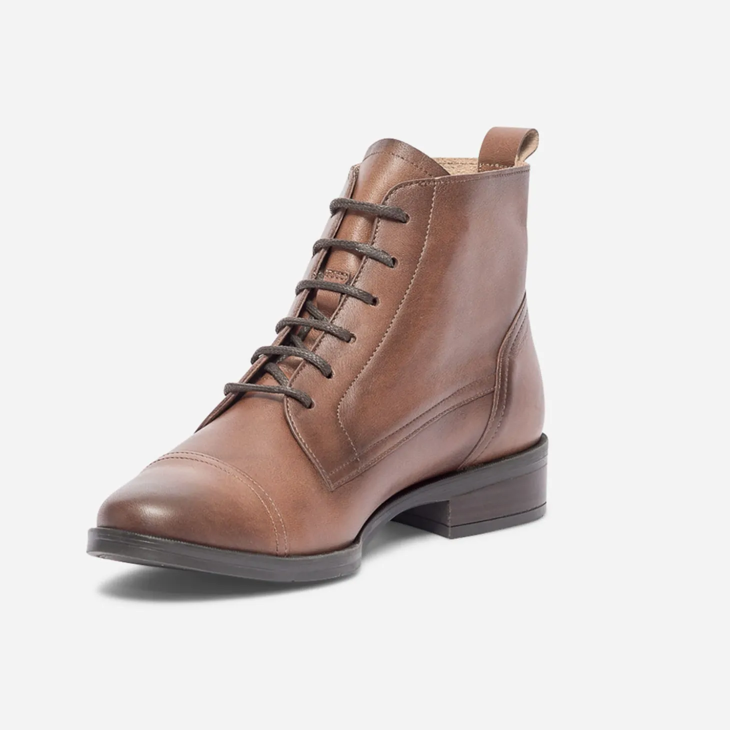 Portée par la tendance bc-bg de la saison, la bottine à lacet fait un retour remarquable et remarqué. En cuir cognac, elle présente un talon carré de 3 cm, ultra confortable au quotidien. Sa tige montante est rythmée de 12 œillets et d’un lacet rond et enduit spécifiques au modèle. A l’intérieur, doublure et première en cuir garantissent un confort optimal, renforcé par une semelle amovible reconnue pour ses propriétés d’amorti, de respirabilité et de durabilité.
