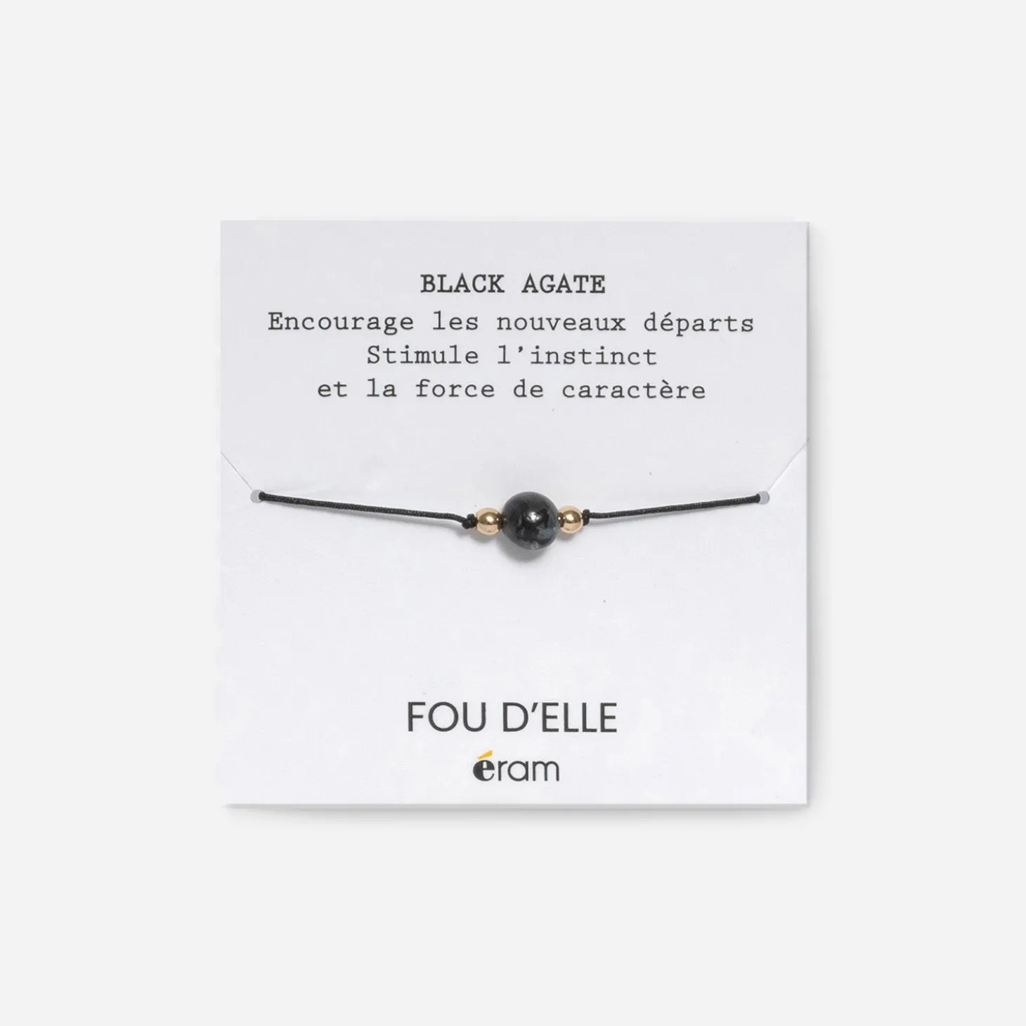 Pour encourager les nouveaux départs, stimuler l’instinct et la force de caractère, misez sur l’agate noire. Une pierre à placer sur le poignet, grâce à ce joli bracelet dans les tons gris et noirs, pour écarter les énergies négatives et renforcer la confiance en soi. Prête à essayer ?