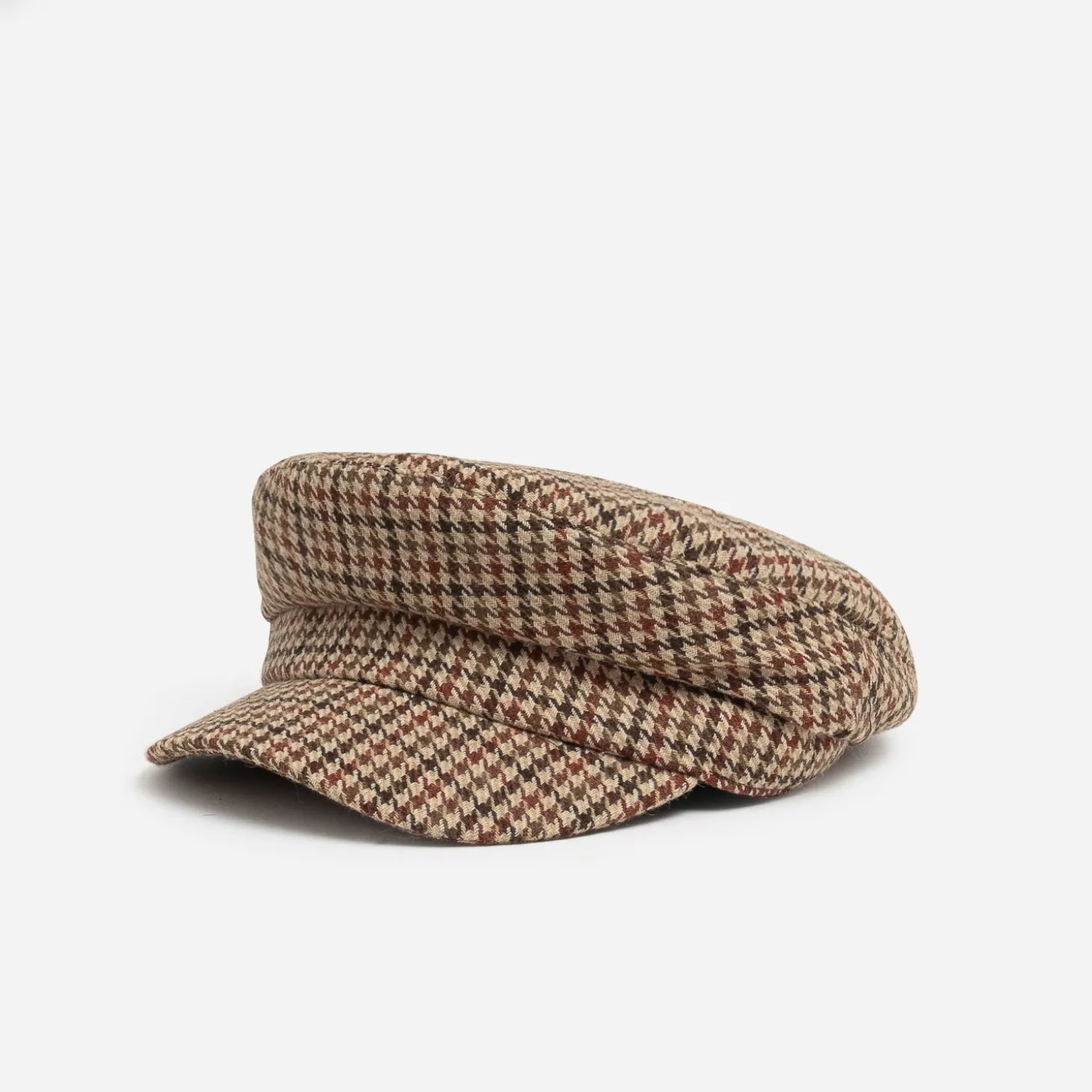 Casquette beige à motif pied-de-poule coloré