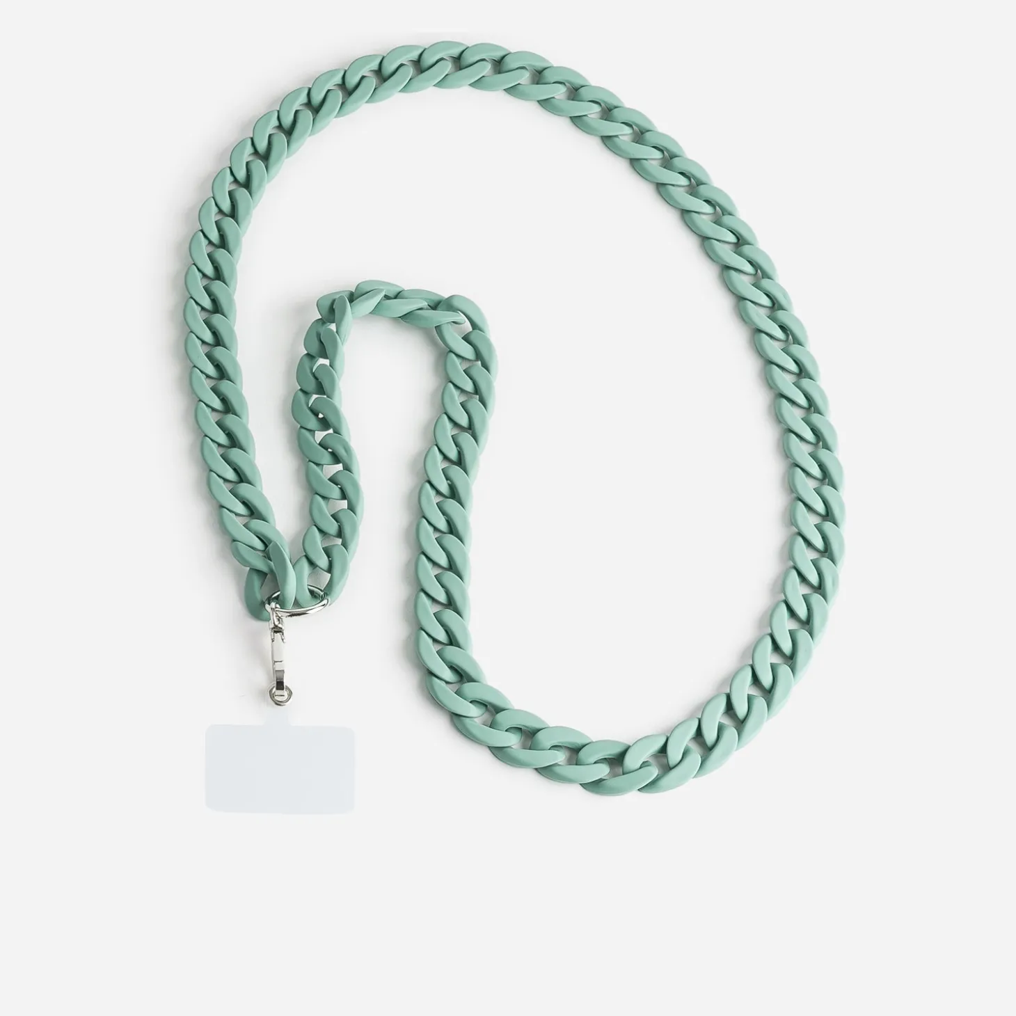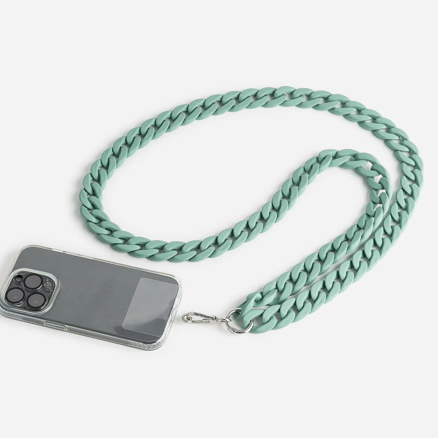 Composée de gros maillons, coloris vert sauge et finition mate, cette chaîne-bijou est étudiée pour porter, votre téléphone portable, autour du cou. Fonctionnelle et stylée, elle permet de l’avoir toujours à portée de main, sans vous encombrer les mains.