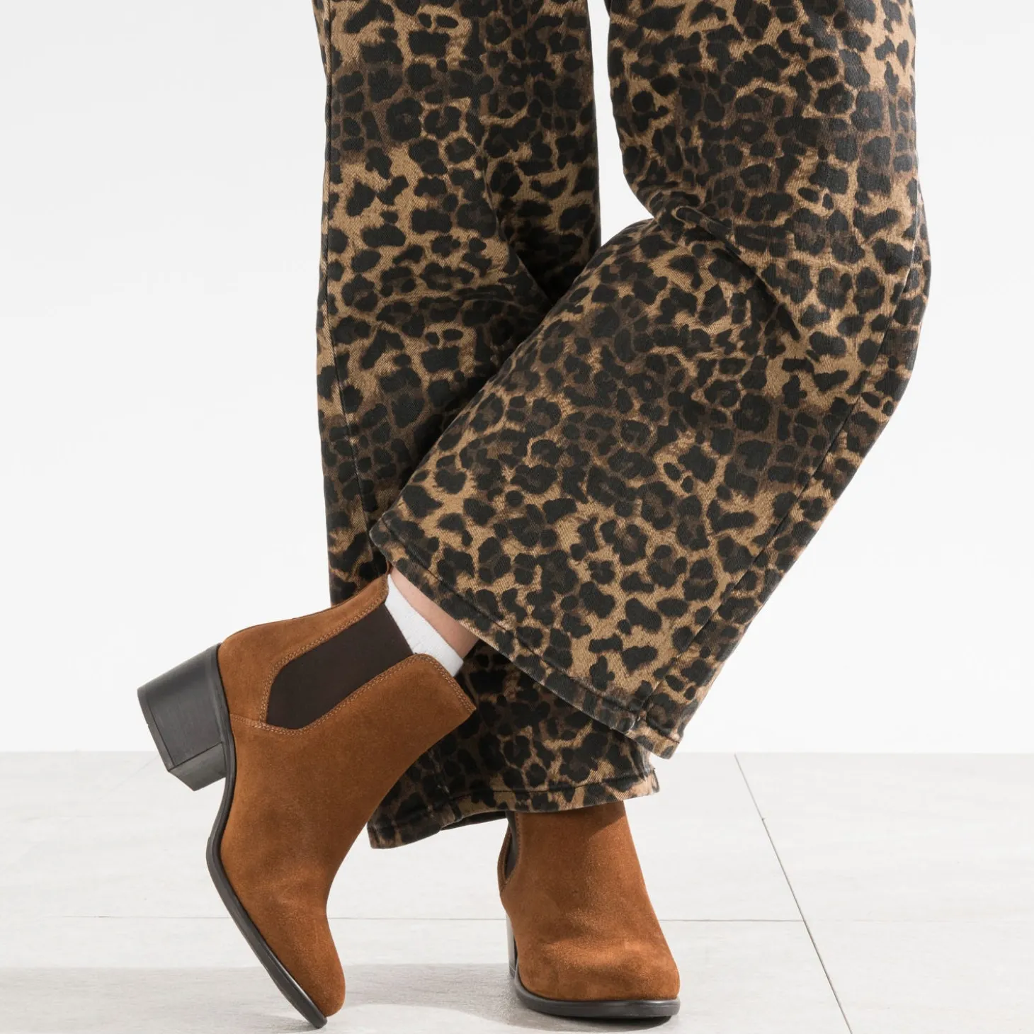 Dans la famille des essentiels à mettre à ses pieds, on demande le Chelsea boots. En cuir velours camel, il est reconnaissable à ses élastiques latéraux, qui facilitent l’entrée du pied. Il est monté sur un talon large de 5,5 cm. Un modèle idéal pour l’entrée de saison, qui se porte aussi bien avec une robe qu’avec un pantalon.