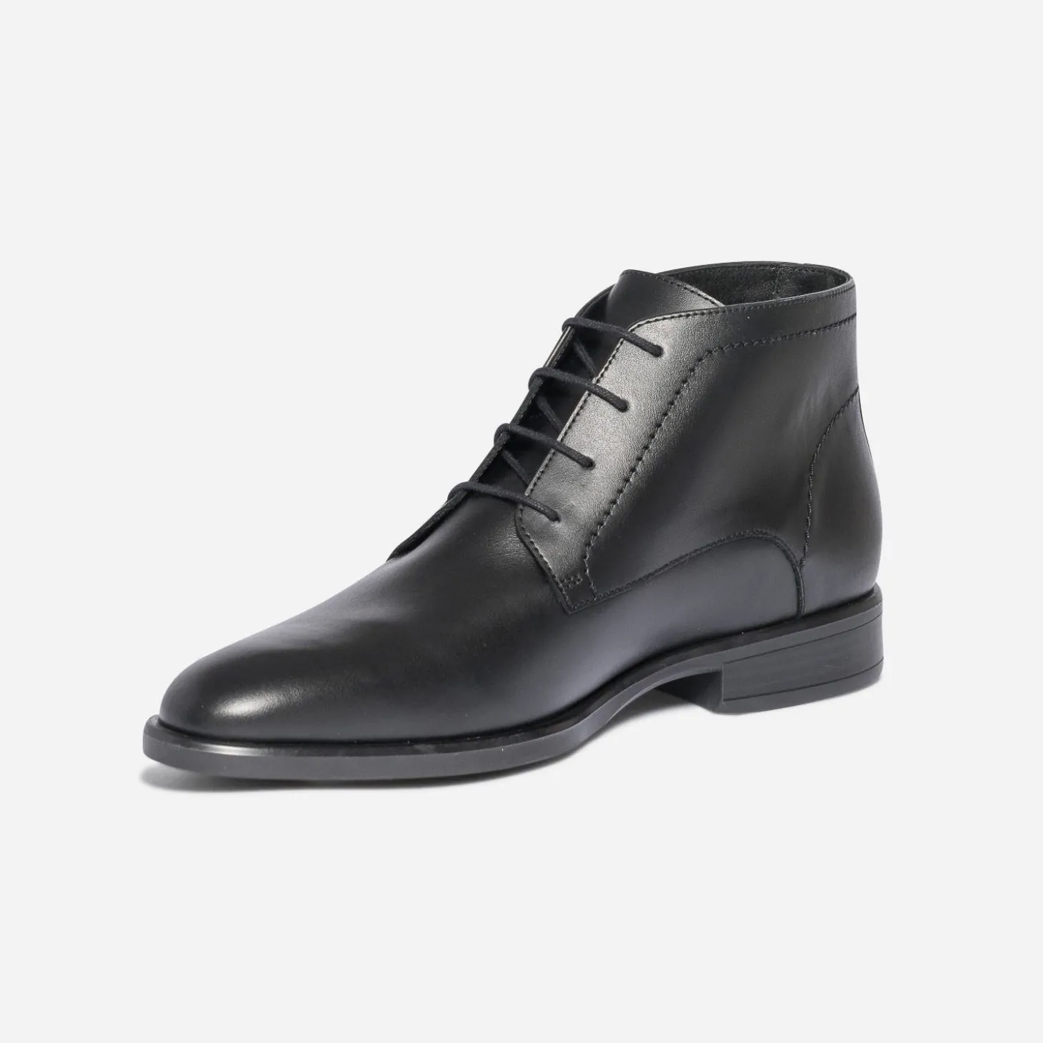 Le Chukka boots est un nouveau modèle masculin, qui mérite d’être essayé. Il est confectionné en cuir noir et se démarque par une tige plus souple. Doublure en cuir, première en cuir, il promet un confort absolu. Un modèle parfait, avec un look formel, comme le costume noir et la chemise blanche.