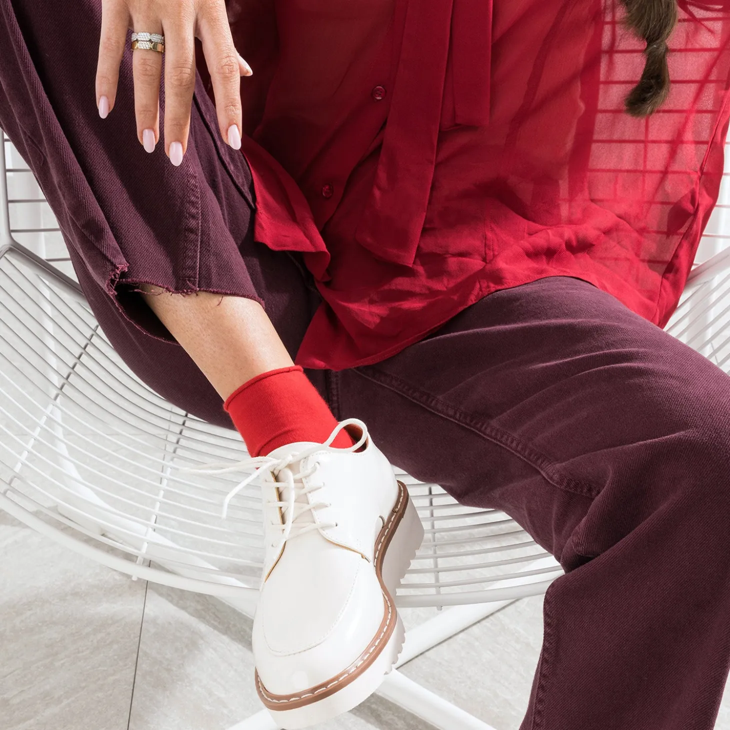 Soyez le premier à laisser votre avis sur “Derby compensé écru verni” Annuler la réponse
