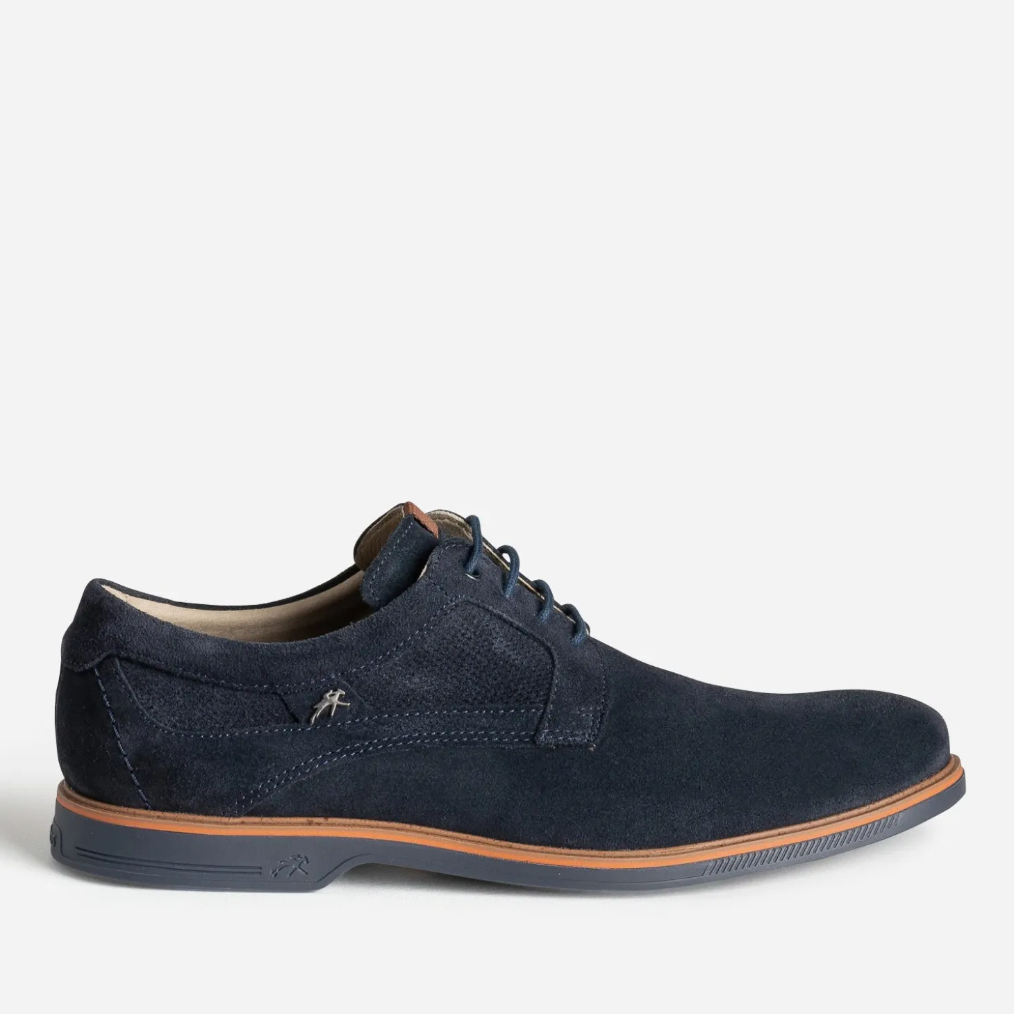 Cuir velours souple, coloris bleu marine, le derby pour homme reste un incontournable des souliers masculins. Les quartiers se démarquent par un embossage, et la trépointe, par une touche de camel, et la doublure, par un motif imprimé et coloré. Un modèle à préférer, au quotidien, avec une chemise bleu ciel et un pantalon chino beige.