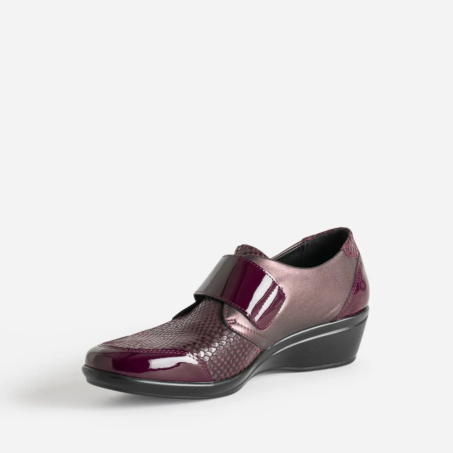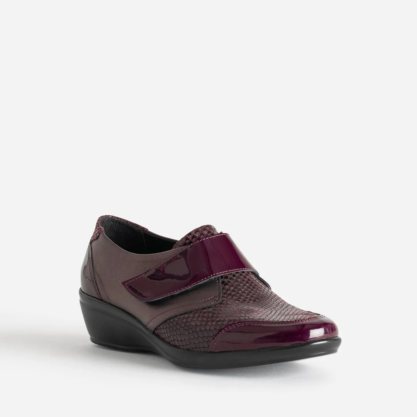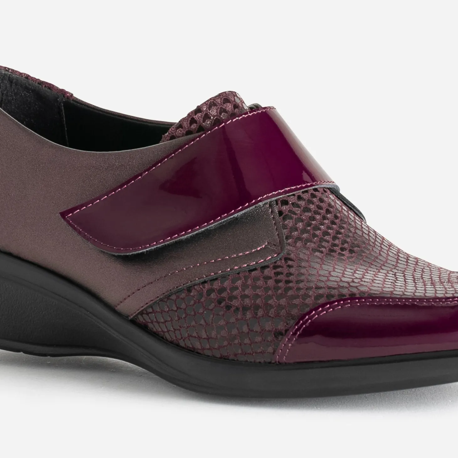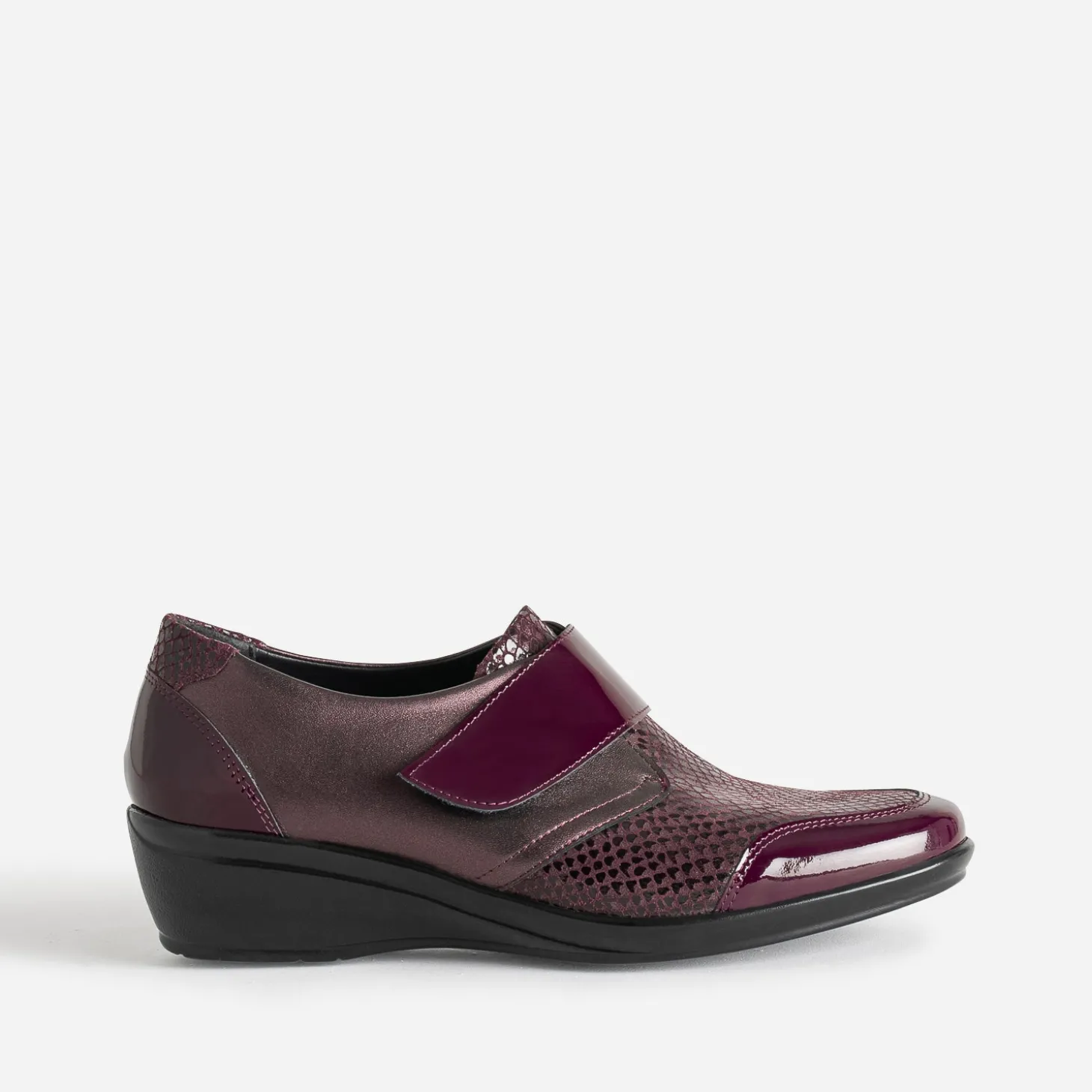 Monté sur un talon compensé à hauteur modérée, ce derby pour femme est un modèle incontournable en toutes saisons. En cuir, il se décline en coloris bordeaux, sur des matières mates, vernies ou à imprimé effet python noir. Il se ferme par un scratch qui s’ajuste parfaitement à la forme du pied. Son atout reste son confort absolu, grâce à sa souplesse et à une semelle intérieure amovible, afin de pouvoir y placer celle la plus adaptée pour vous. Un modèle, à privilégier avec une tenue décontractée dans des couleurs foncées.
