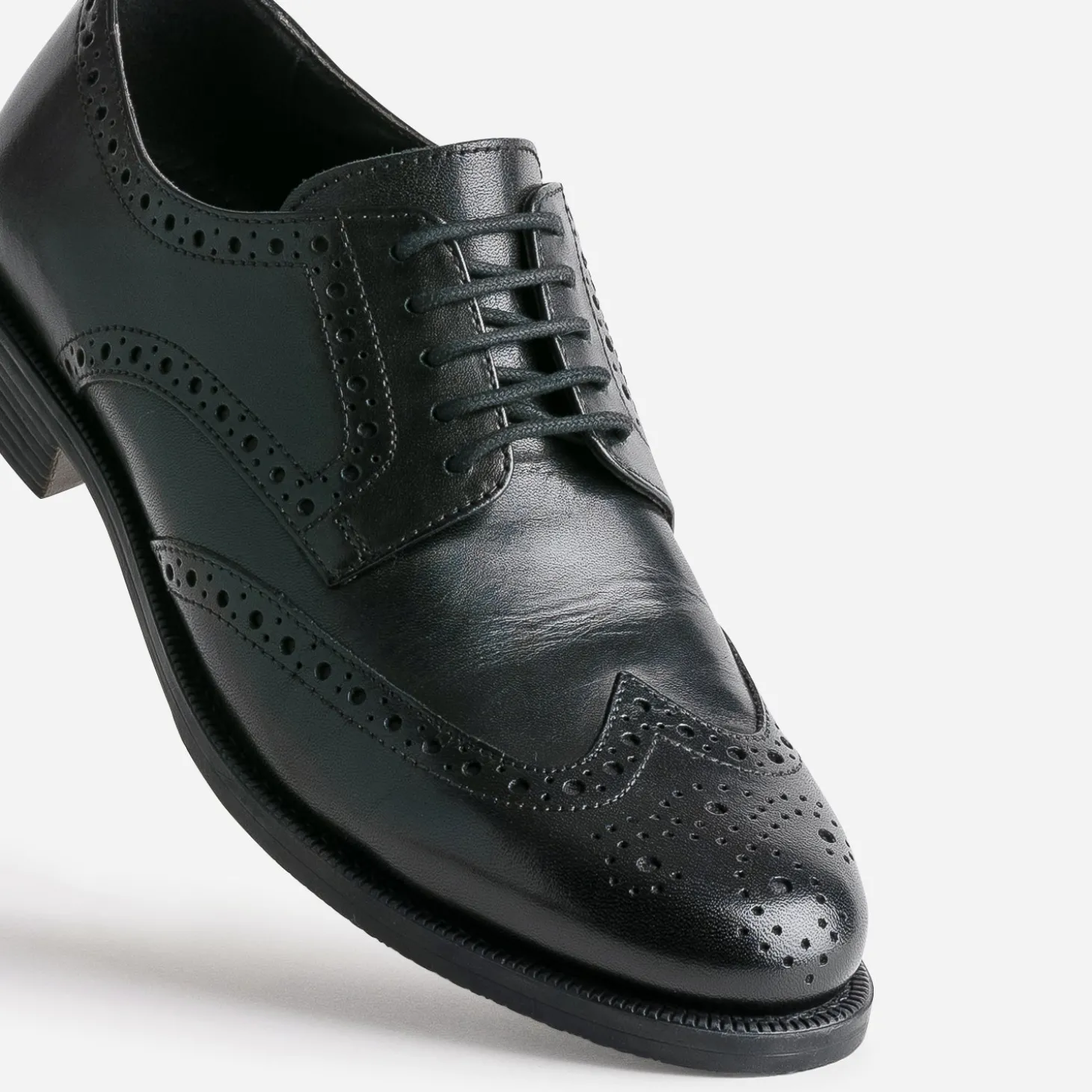 Derby noir en cuir détails perforations