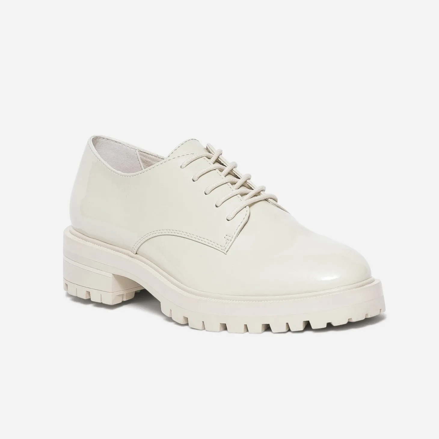 1. Une semelle épaisse et crantée, d’une parfaite stabilité. 2. Un coloris écru et une finition vernie, qui apporte du chic. Voilà 2 bonnes raisons de vous laissez tenter par ce derby pour femme. Synthétique, il présente une doublure textile et une première en cuir. Un modèle monté sur talon de 4 cm, pour vous accompagner, au quotidien et sans contraintes, dans tous vos déplacements.