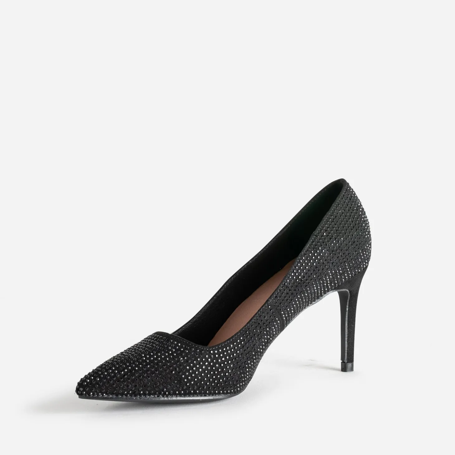 Time to glam’ ! Avis aux fans de talons hauts de 8 cm : cet escarpin femme sublime la silhouette instantanément. Conçu en textile mat, il se décline dans un sublime coloris noir, avec décor de strass ton sur ton, qui renforce son côté chic. Robe de soirée ou look rock, il est l’heure de vous faire remarquer.