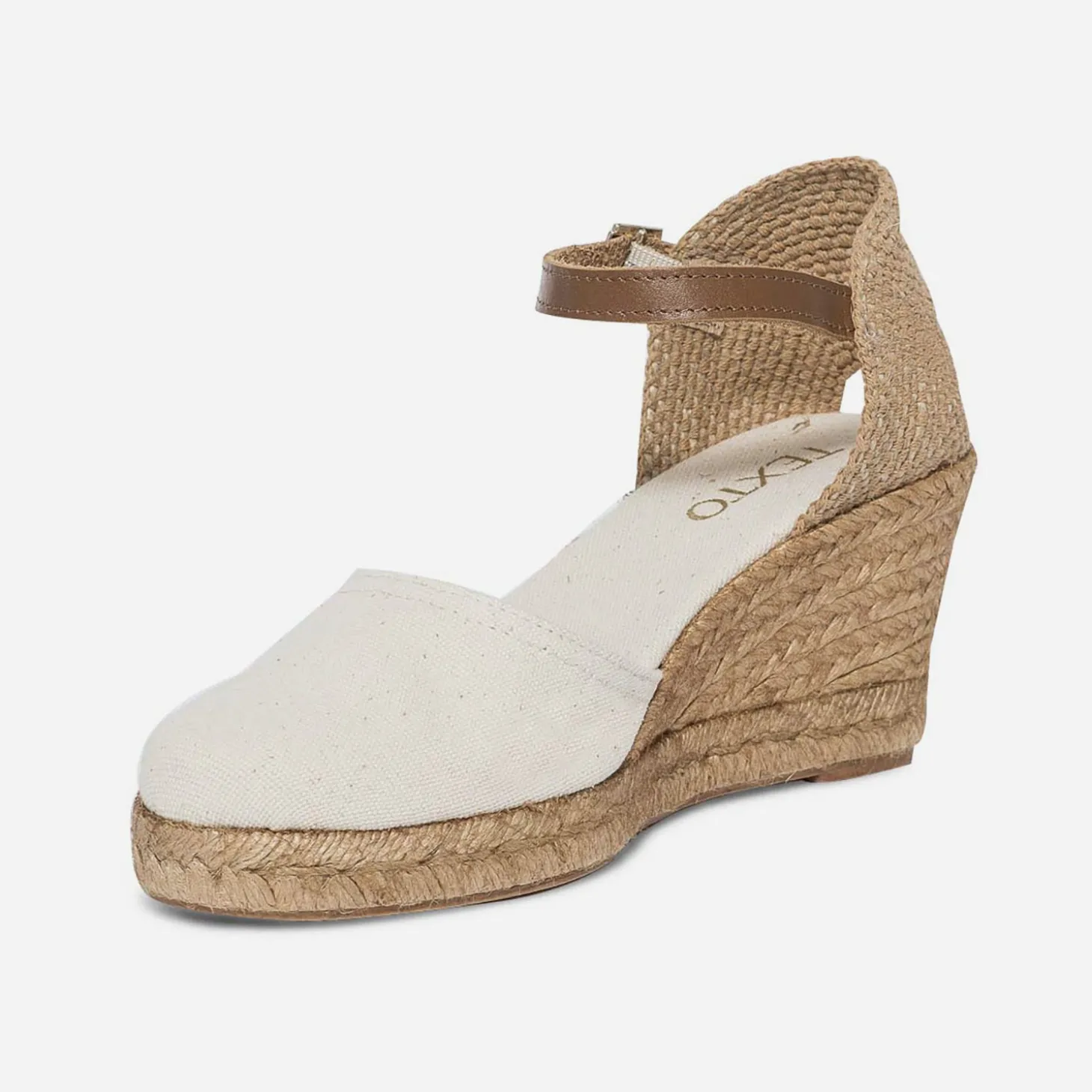 L’indémodable espadrille à talon compensé en corde reste la star de l’été ! En toile écrue sur le dessus, et jusqu’à la doublure et à la semelle première, elle présente une fine bride synthétique marron autour de la cheville. Adoptez-la sans modération avec un style casual au quotidien, au gré de vos envies. Fabriquée en Espagne