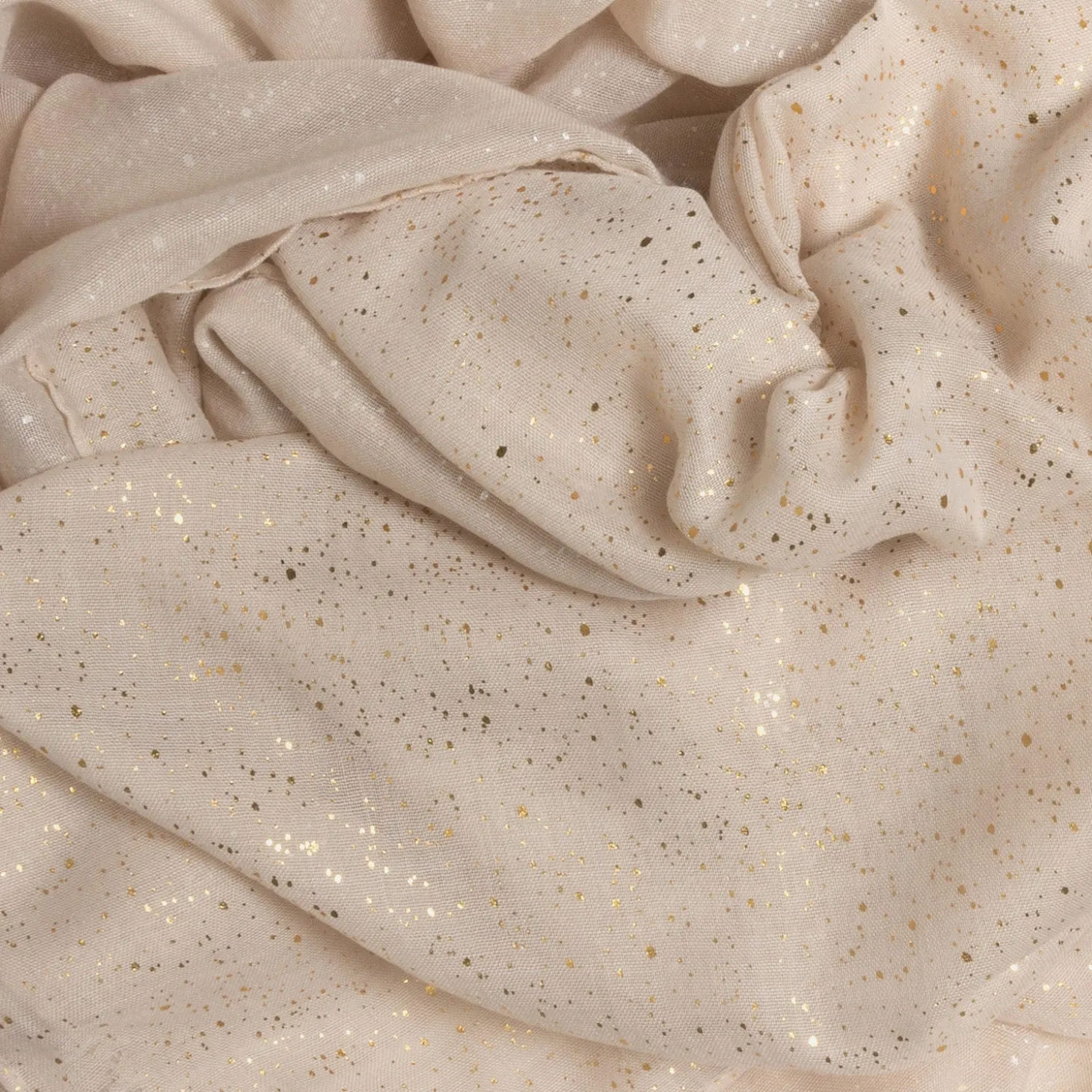 Le beige est un coloris sobre et intemporel, qui matche avec la plupart des couleurs. C’est l’idéal pour un accessoire. Comme ce foulard femme, de belles dimensions, rehaussé d’un effet tachiste pailleté doré.