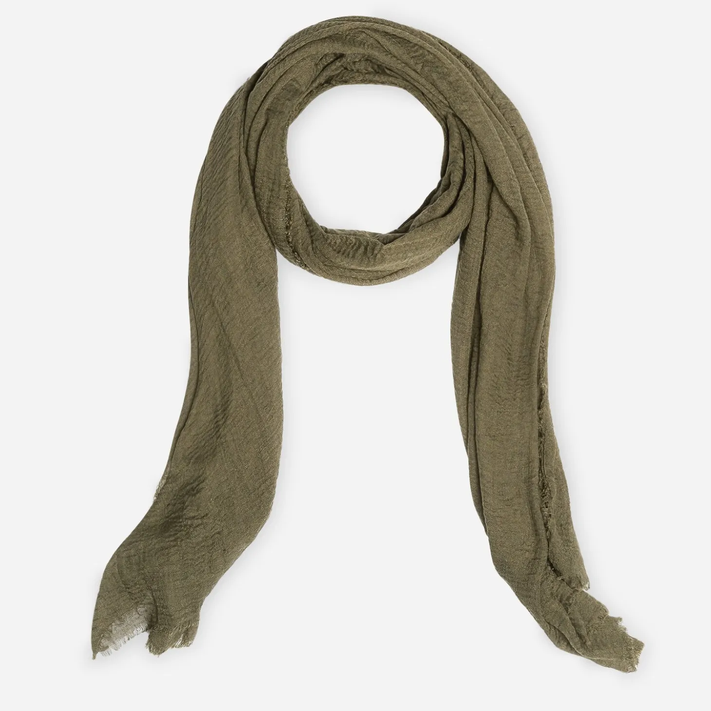 Il n’y a pas de saisons pour porter un foulard. Misez sur un coloris tendance, comme le kaki, pour réveiller vos tenues. Avec du blanc, de l’écru, beige ou du camel, voire du gris, laissez libre cours à vos envies.