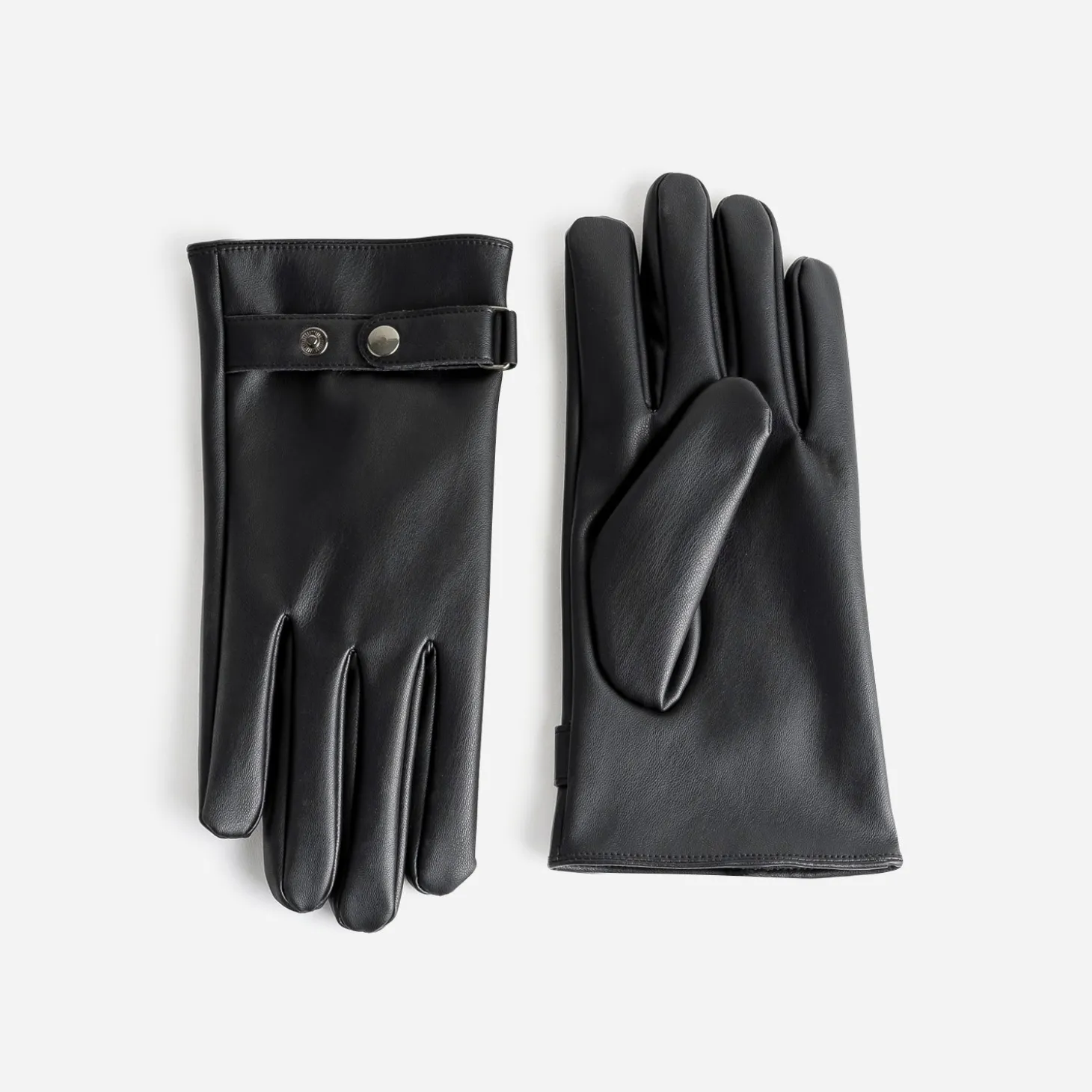 Parfaite imitation cuir pour ces gants pour homme en matière synthétique. Noirs, ils sont finalisés par une patte réglable par pression, positionnée aux poignets. Un modèle à offrir, à s’offrir, pour finaliser les looks d’hiver d’une touche rock.