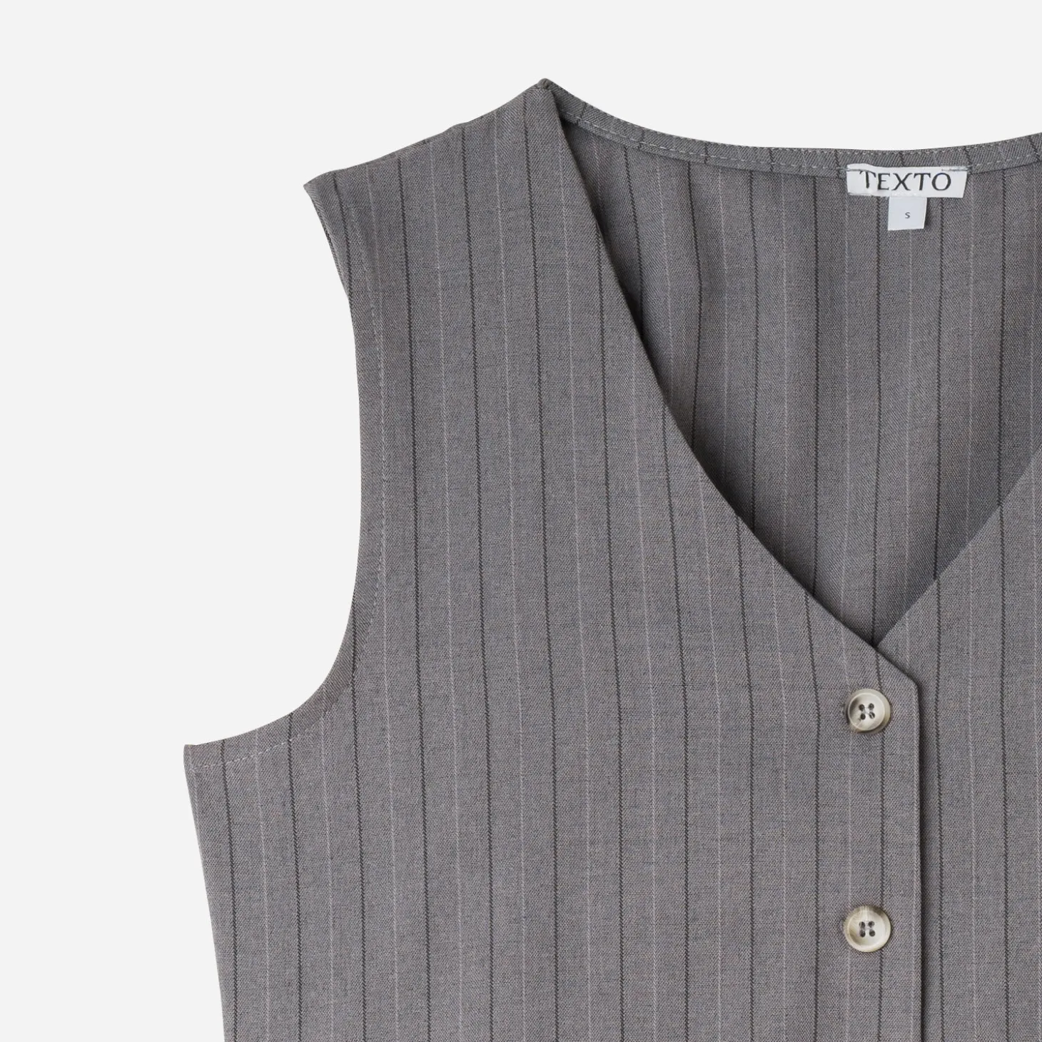 Forme droite, encolure V, sans manches, motif rayures tennis, fermeture par boutons.