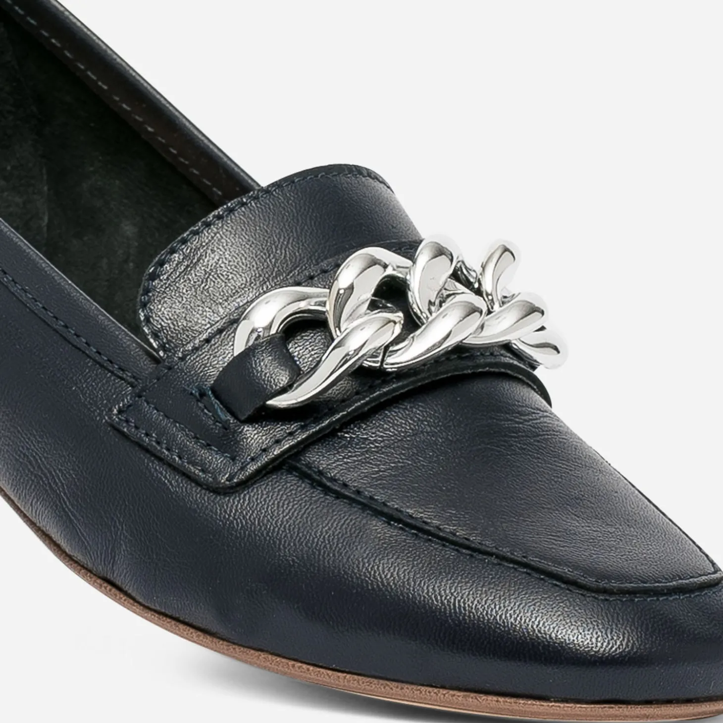 Mocassin marine cuir maxi chaîne argentée