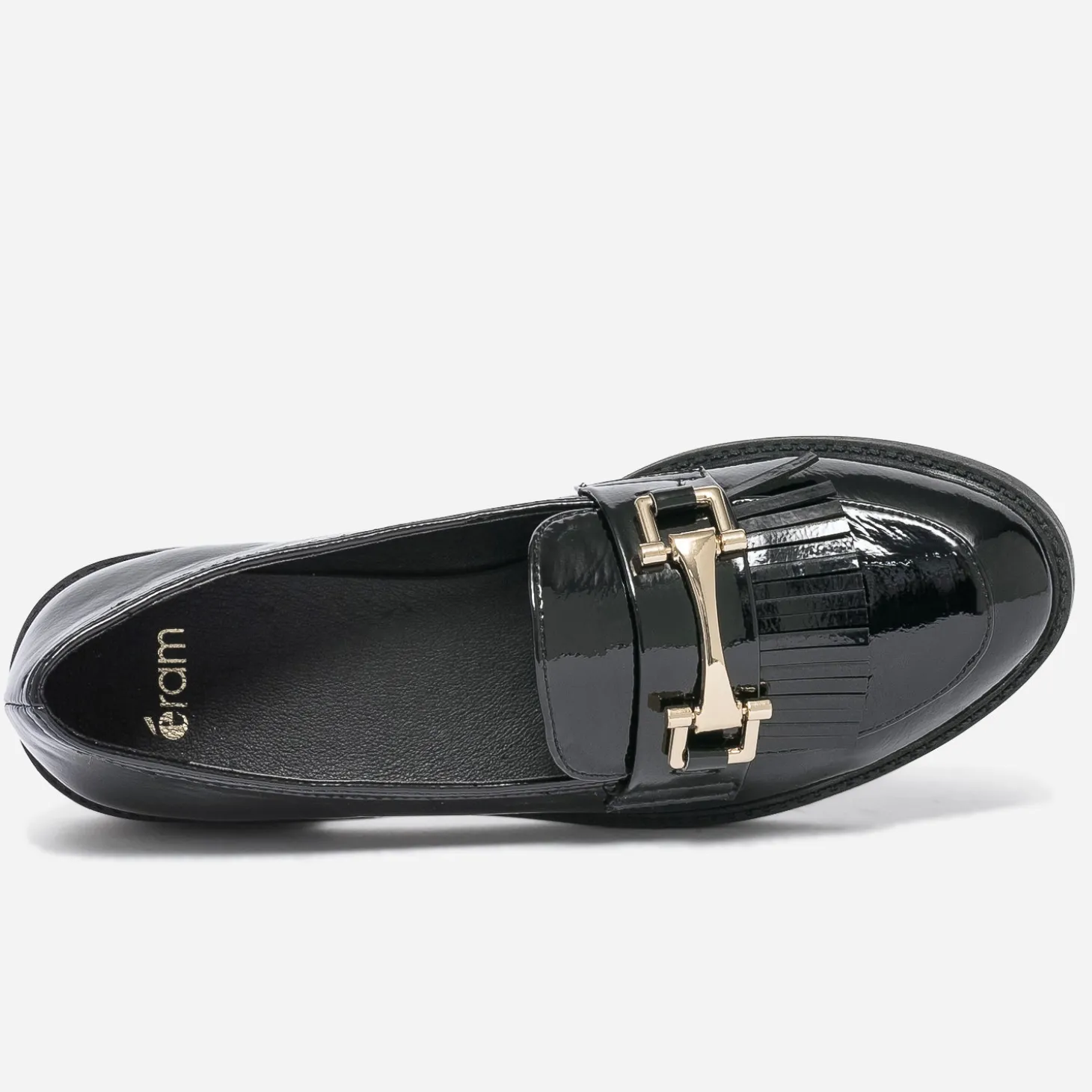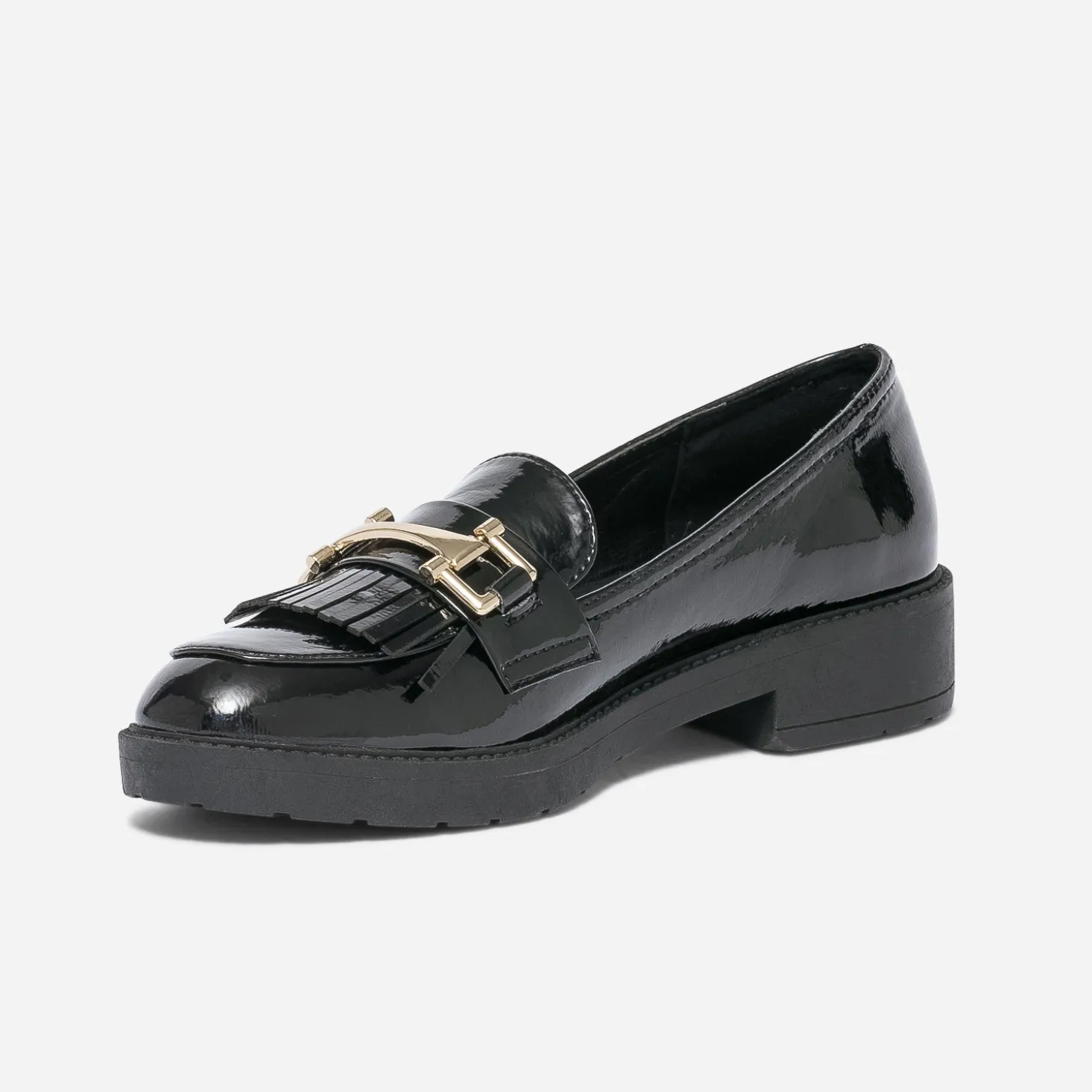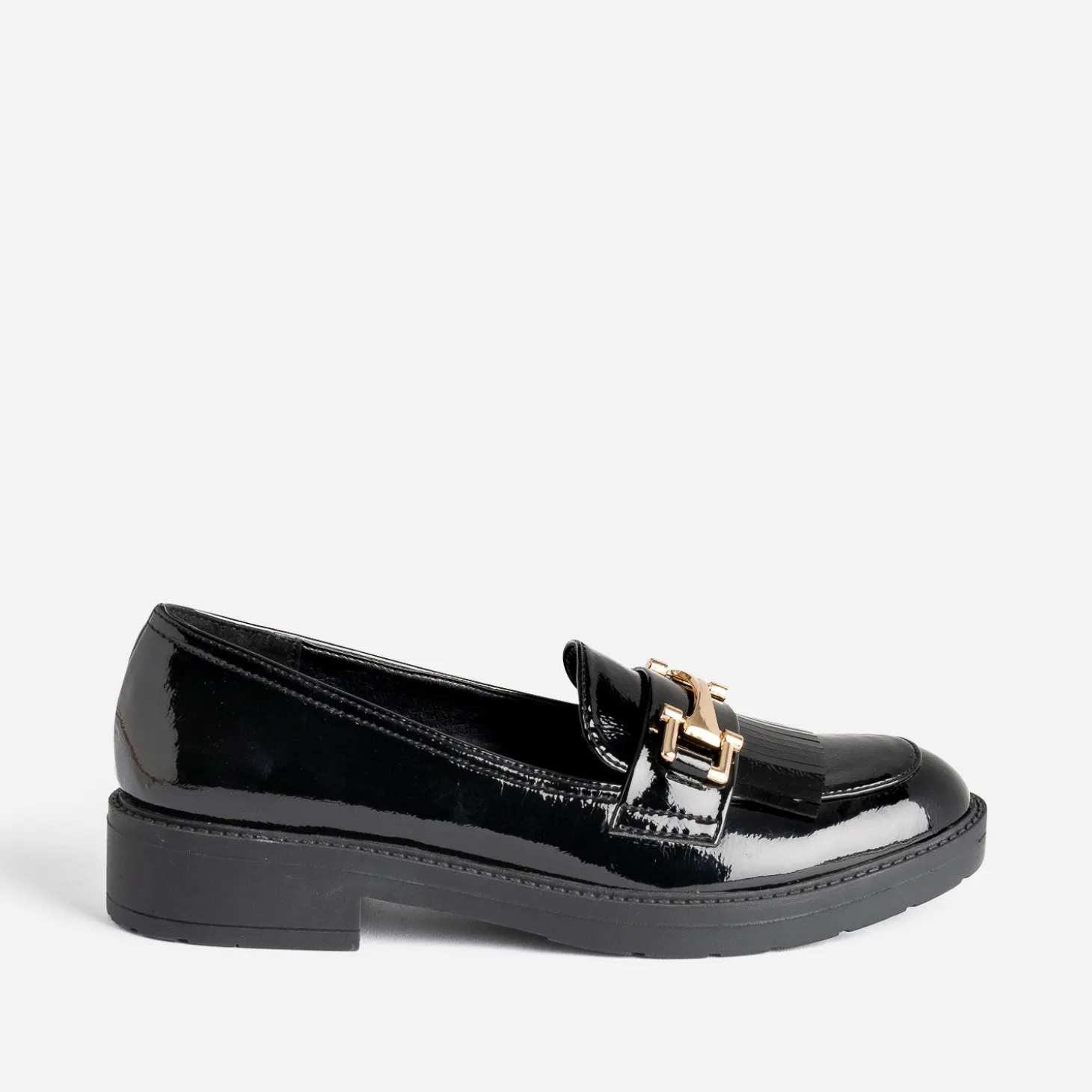 Mocassin noir verni à franges