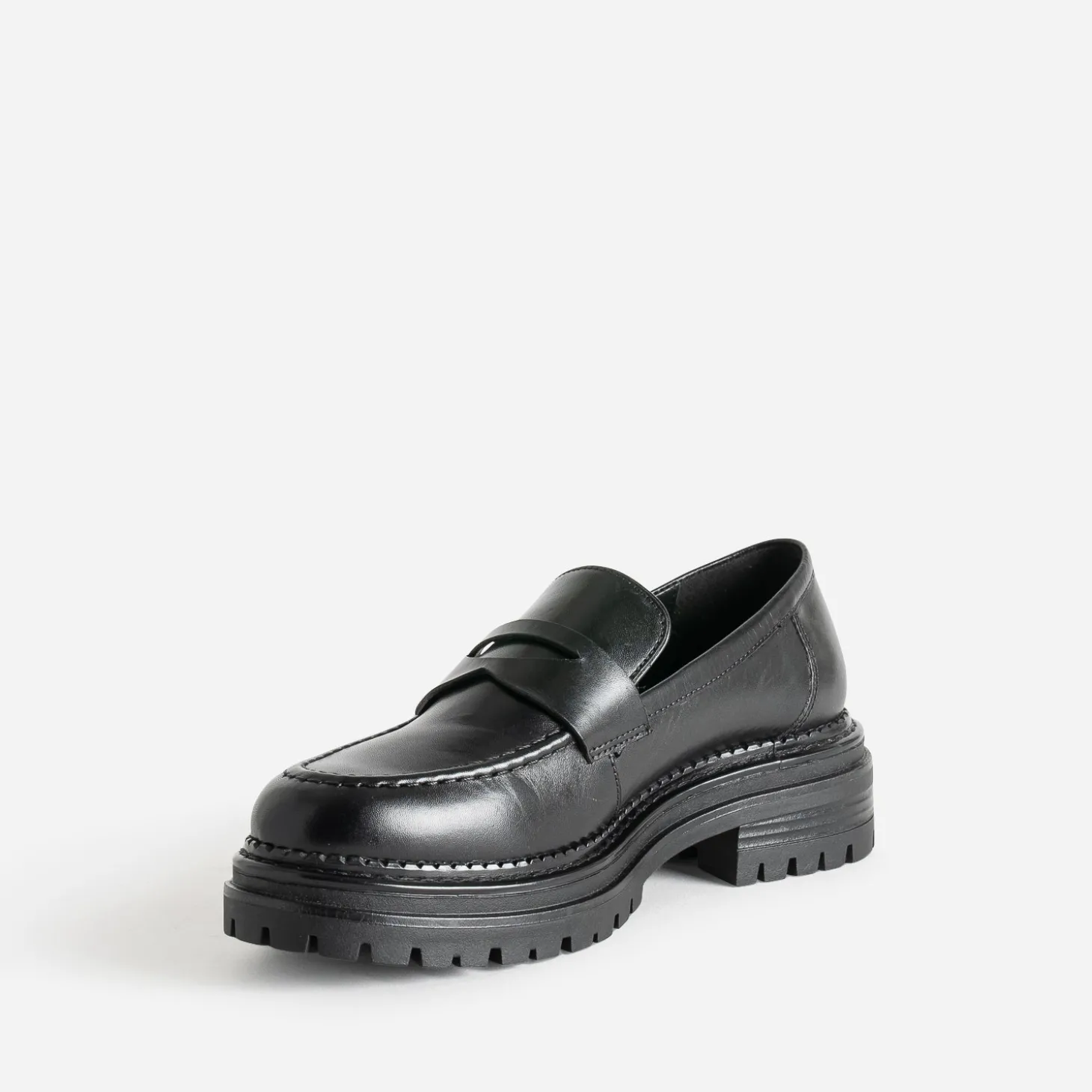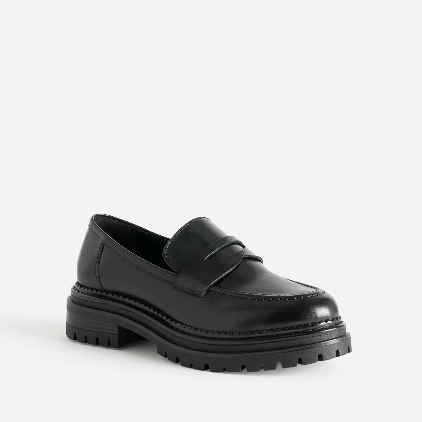 Mocassin TEXTO noir cuir semelle crantée