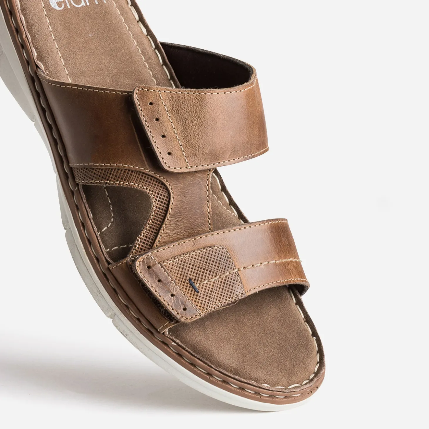 Mule marron en cuir à scratchs