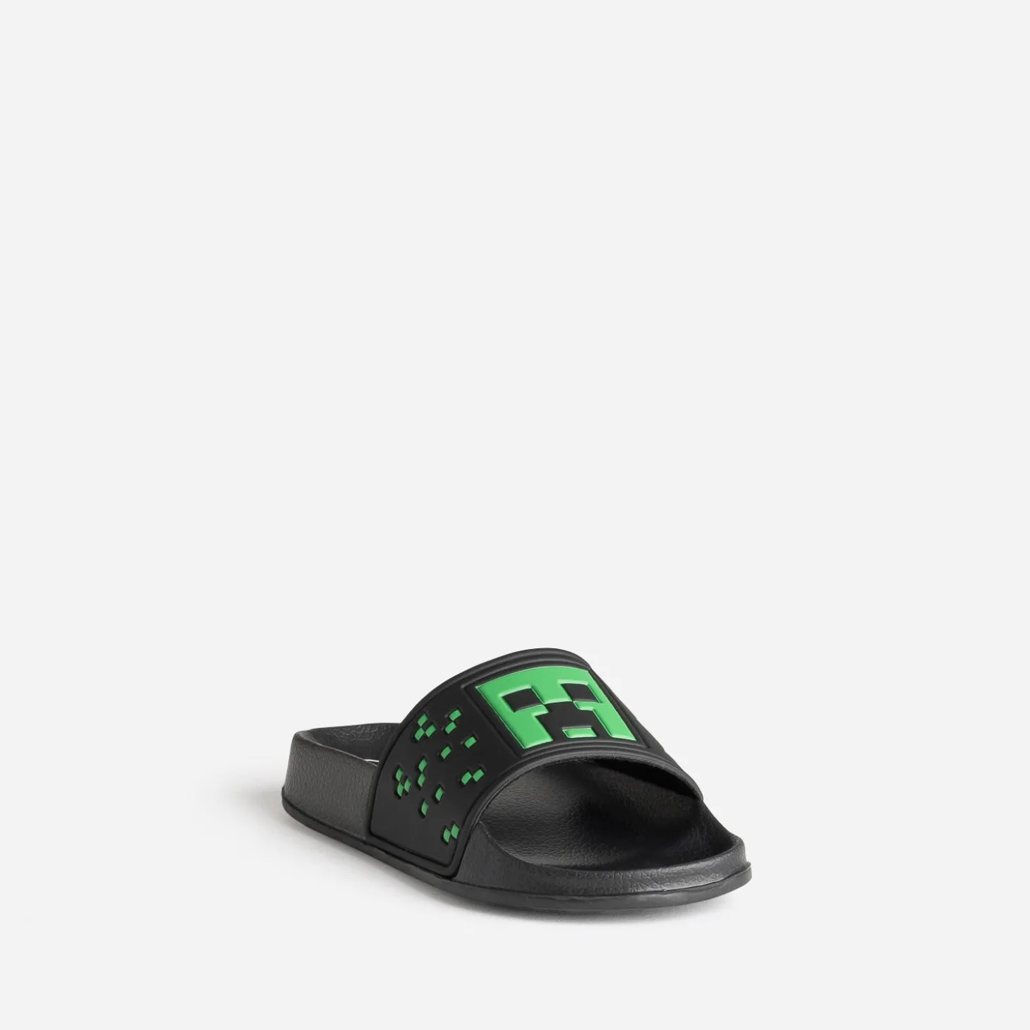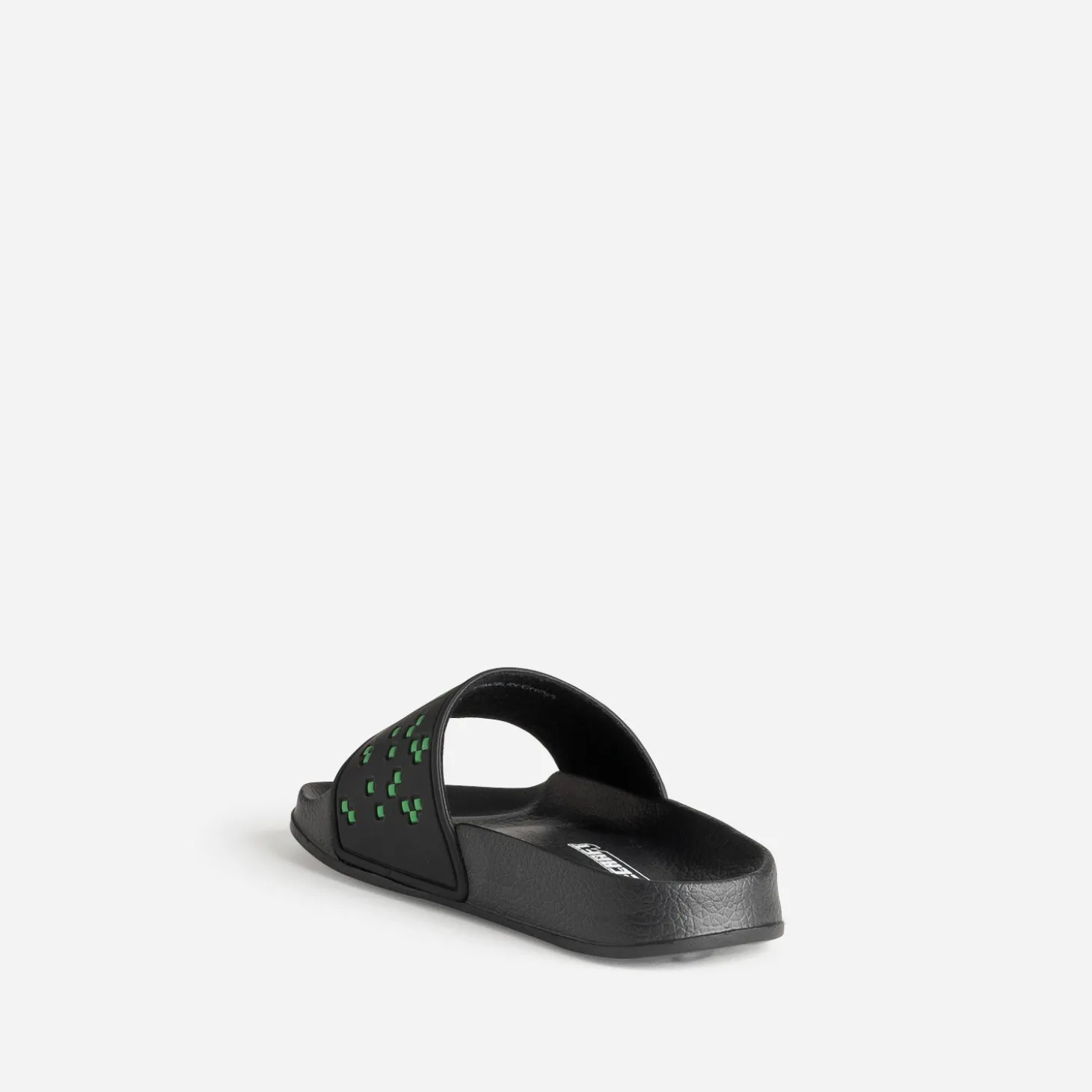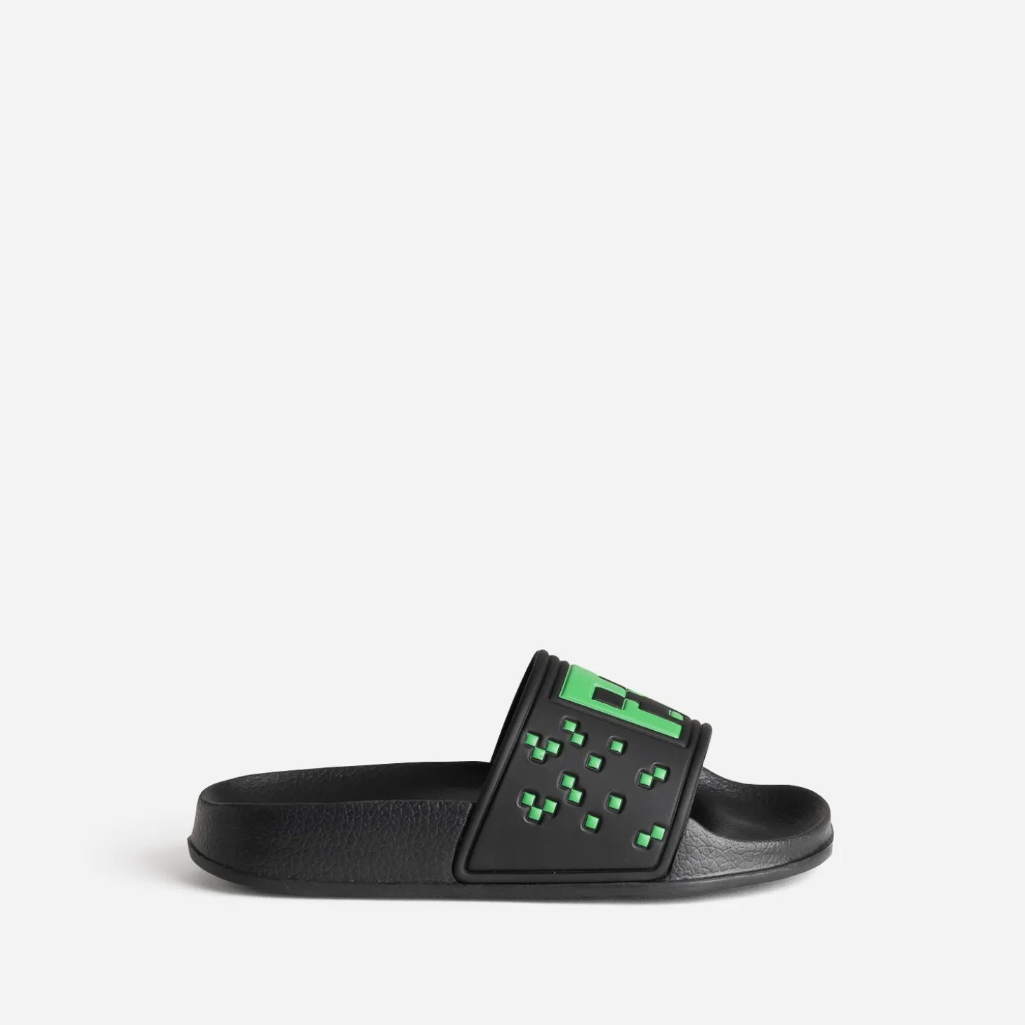 Passion jeux vidéo assumée avec cette mule de piscine au design unique. Elle reprend le code couleur noir et vert, et les détails graphiques, logo et cubes, dans une version embossée qui apportent du relief. Confortable et pratique, elle s’invite au pied, en vacances, en colo, à la piscine comme à la mer.