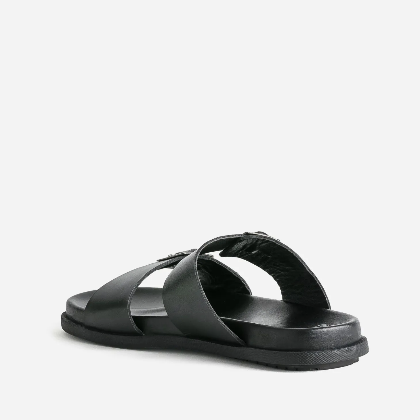 Pourquoi ne pas s’autoriser des mules aux pieds, dès l’arrivée des beaux jours et de l’été ? Misez sur un esprit minimaliste, sobre, épuré. Du noir jusqu’à la semelle, pour matcher avec tout. De larges brides, pour un maintien parfait. Des boucles, pour s’ajuster au pied, sans blesser. On le porte avec quoi ? Avec un bermuda ou un pantalon chino aux bas retournés, avec un polo ou une chemise, pour un look plus raffiné.