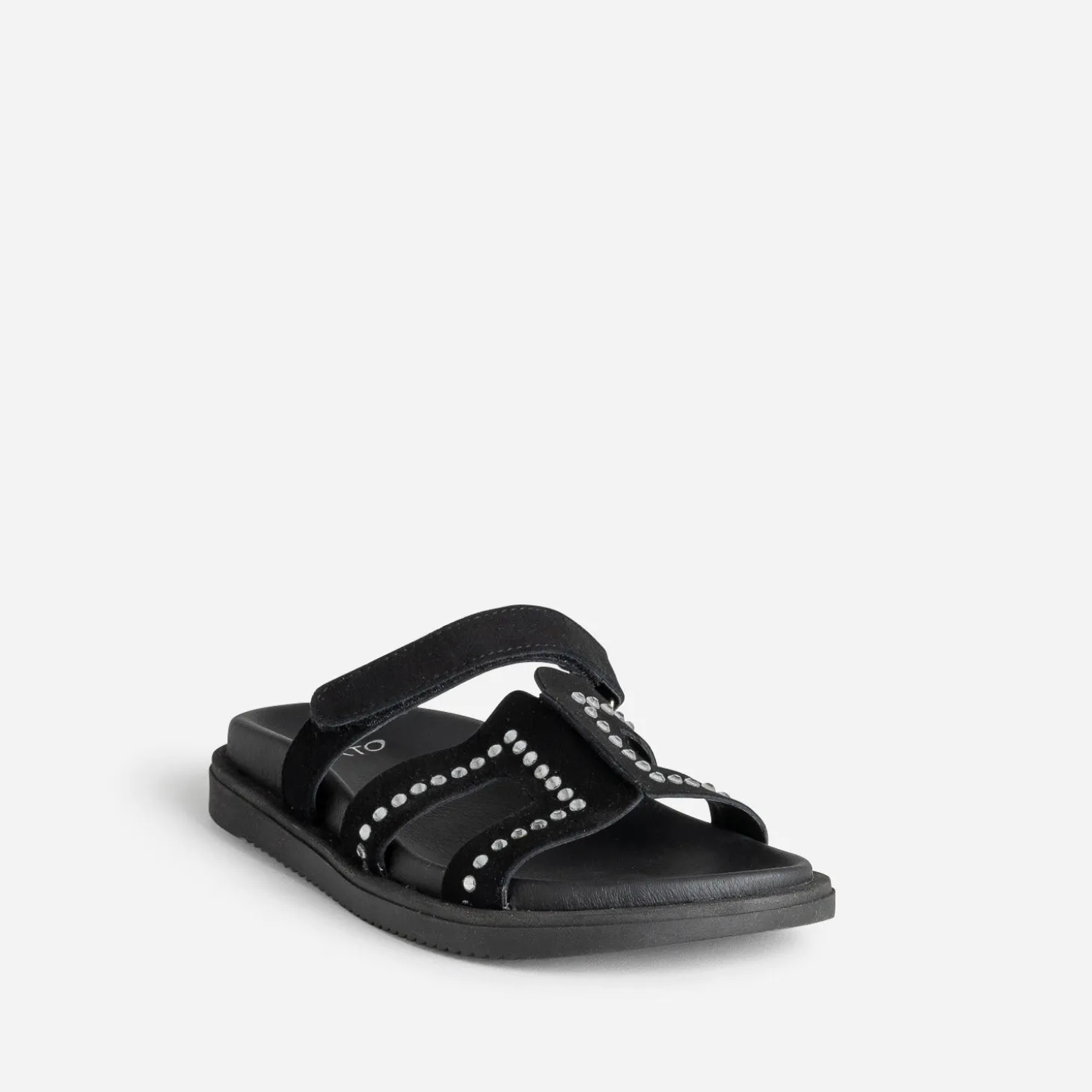 Mule TEXTO noire cuir velours décor strass