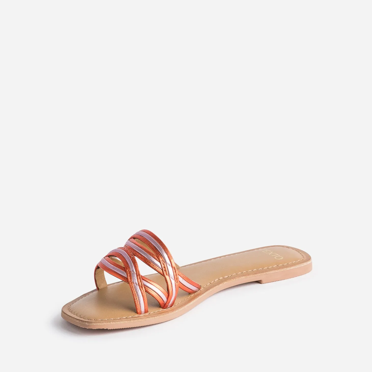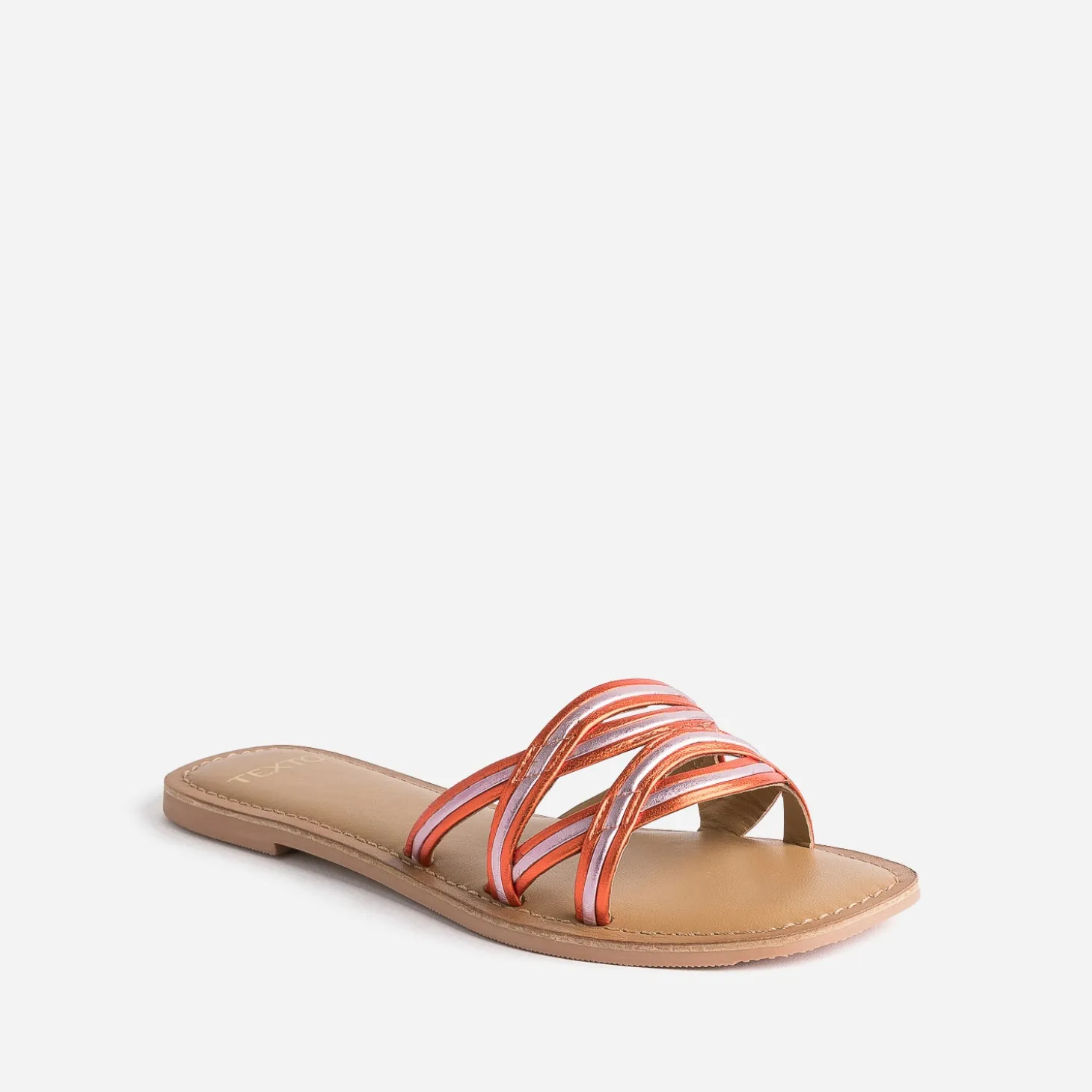 Mule TEXTO orange et parme cuir métallisé