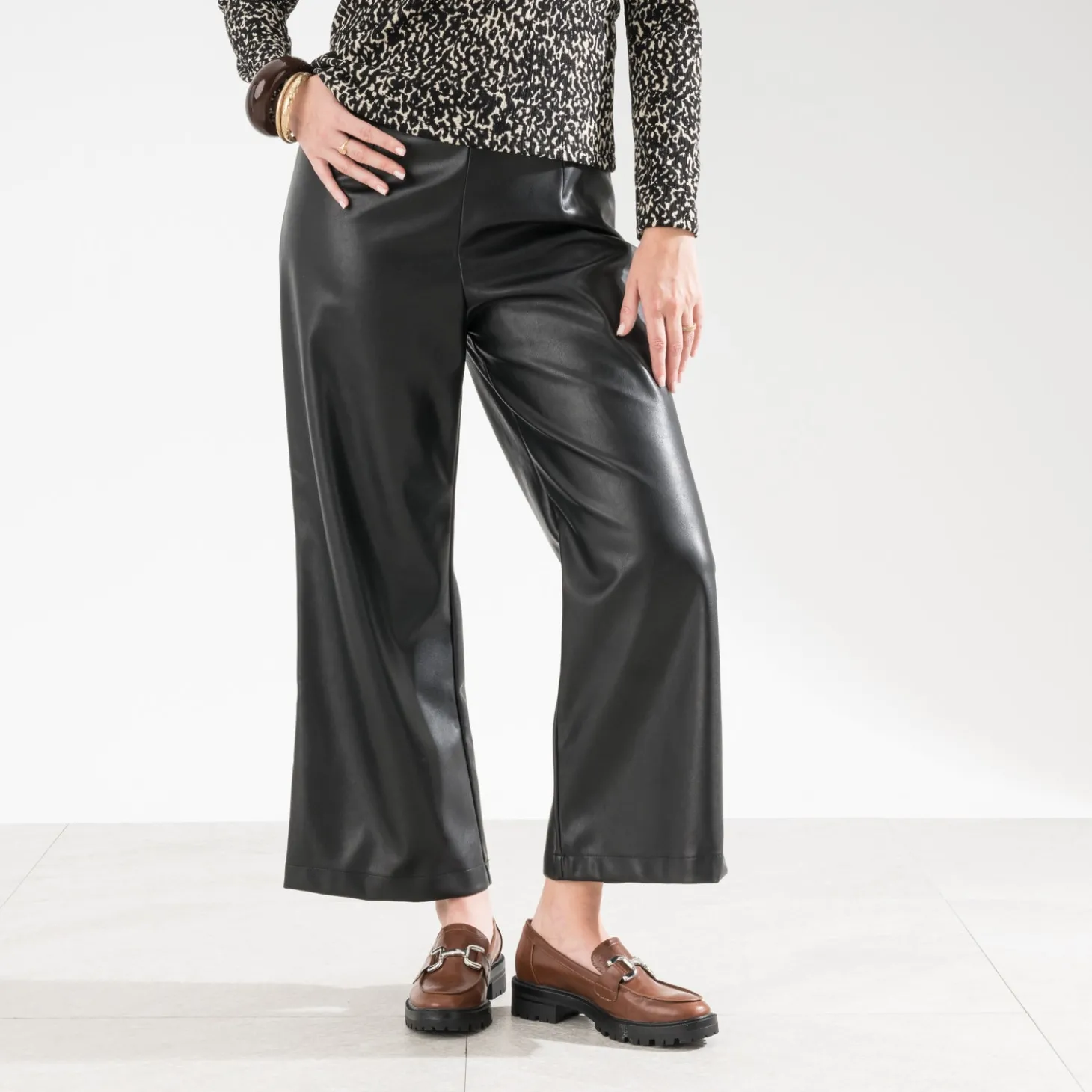 L’atout du pantalon rock, c’est son incroyable pouvoir d’adaptation. Noir, il matche aussi bien avec un sweat et des baskets, en journée, qu’avec une blouse fluide et des boots à talon aiguille, en soirée.