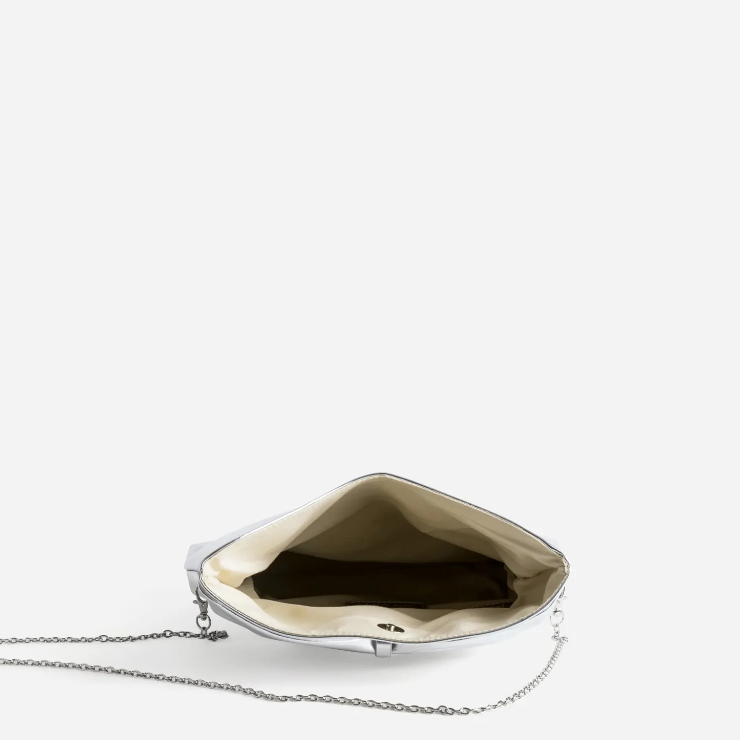 La robe chic, longue, vaporeuse, que l’on aime sortir pour les grandes occasions, mérite une accessoirisation à la hauteur de son élégance. Faites le choix d’un sac de petit format. En matière synthétique lisse, la pochette s’offre un coloris gris argenté. Rectangulaire, elle est dotée d’un maxi nœud sur le devant, pour y glisser la main. Vous préférez un porté sur l’épaule ou croisé sur le buste ? Privilégiez la fine bandoulière amovible façon chaînette en métal gris. Un accessoire très mode, à réserver avec des tons pastel et froids, bleu ciel, vert d’eau, parme.