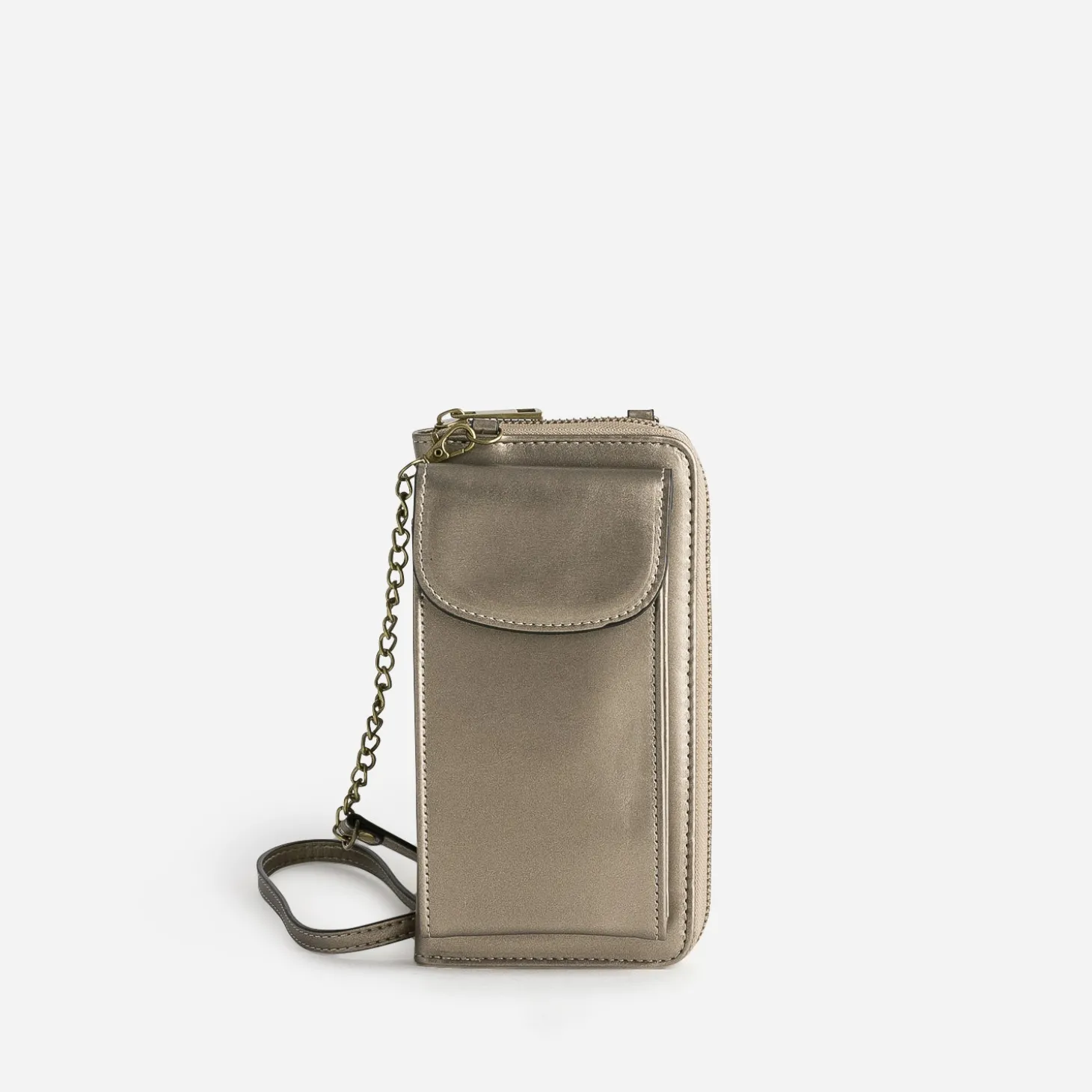 Pochette-téléphone TEXTO taupe métallisé