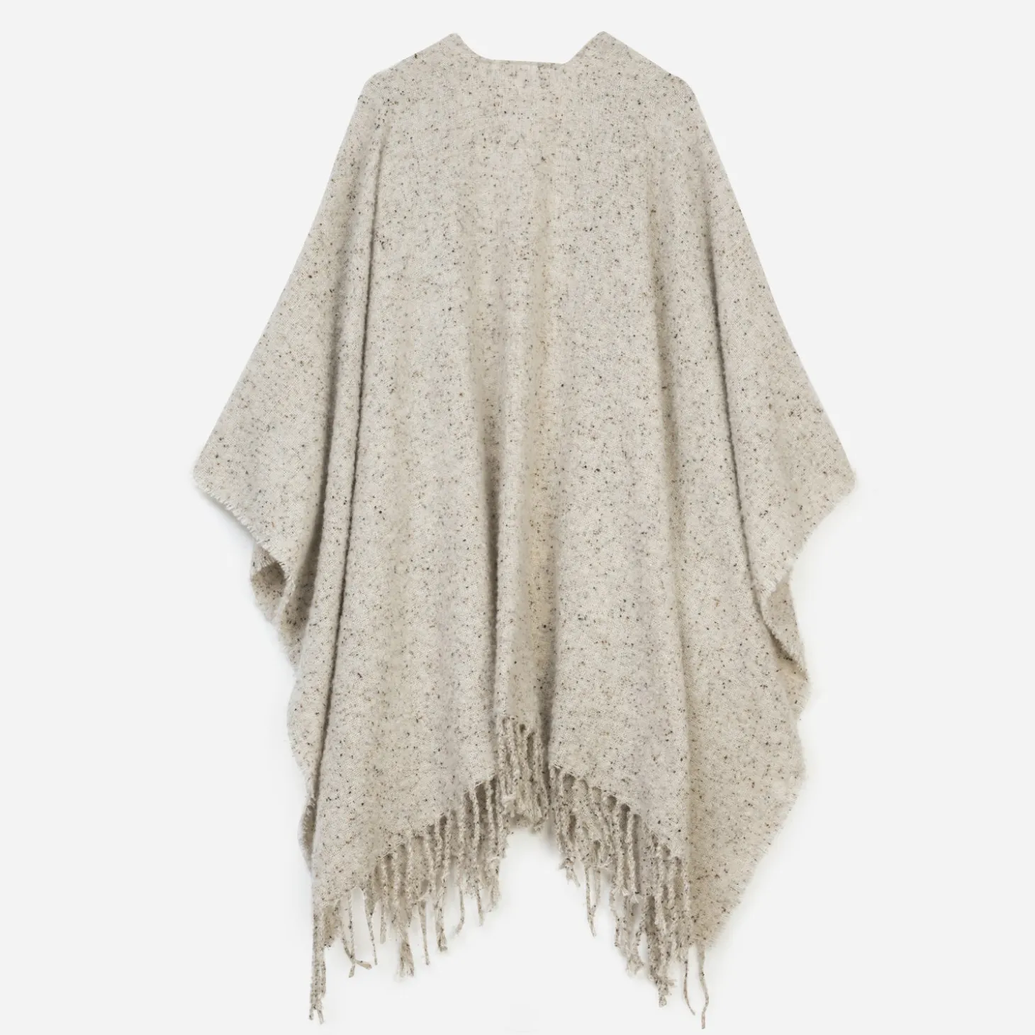 La tendance layering n’a pas dit son dernier mot. Au cœur de l’hiver, elle invite le poncho, à se superposer sur toutes vos tenues. Beige chiné, il est finalisé par des franges, autre signature mode incontournable du moment. Un accessoire idéal pour un look casual et cosy, au quotidien.