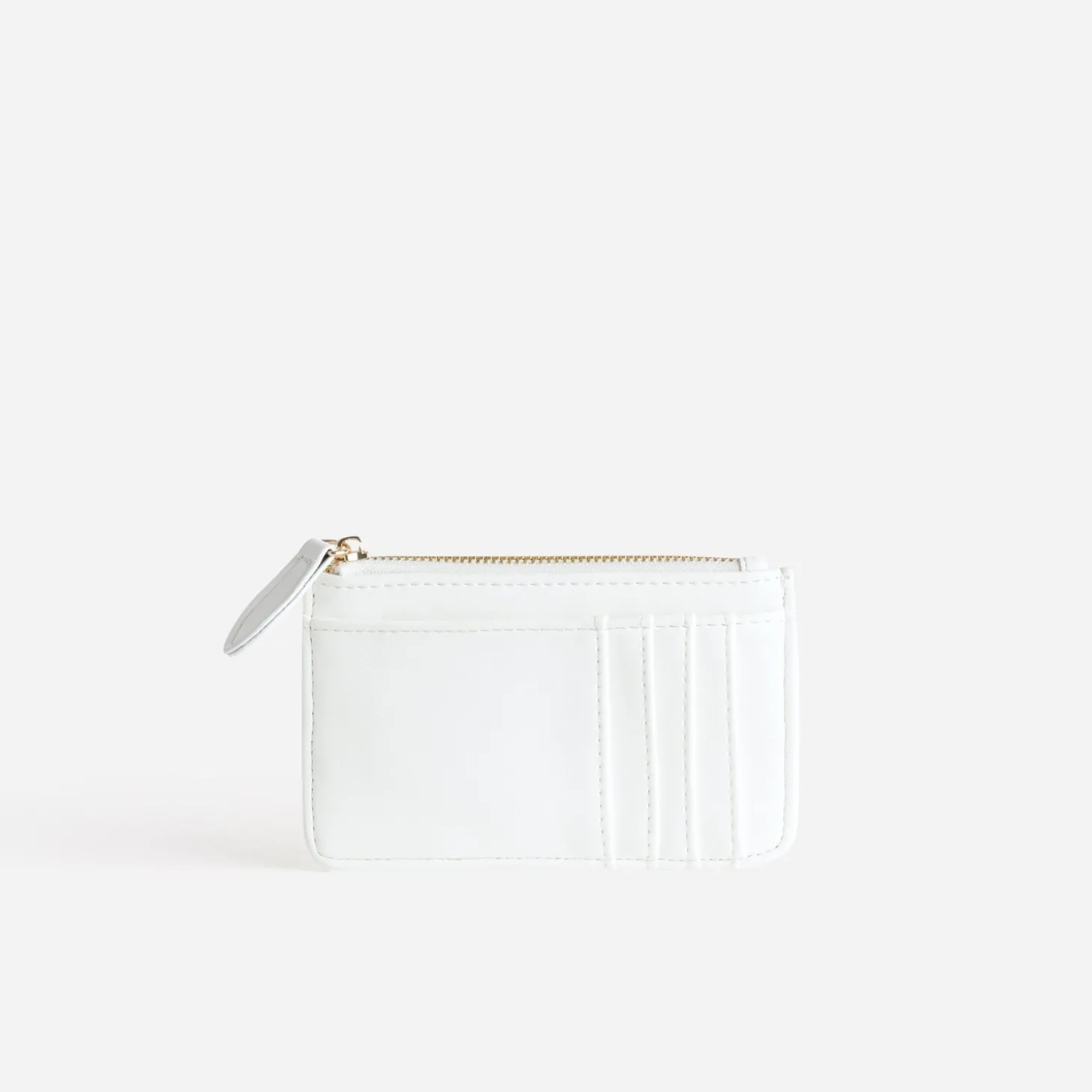 Un peu de monnaie, quelques cartes. Ce porte-monnaie accueille tout ça, malgré son petit format, facile à glisser dans une poche. Il est conçu dans une matière synthétique de couleur blanche, passe-partout.