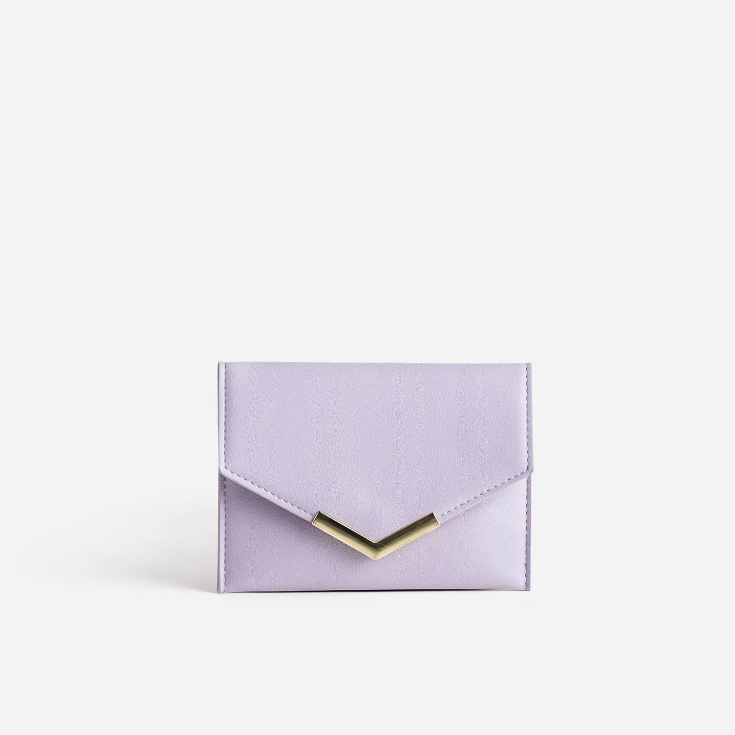 La définition littérale d’une enveloppe, c’est une feuille de papier pliée et collée en forme de poche. Et c’est bien de ça qu’il s’agit. D’une enveloppe en matière synthétique lilas, en guise de porte-monnaie. Fermée par une pression cachée sous rabat, il est souligné d’une pointe en métal doré. A glisser dans le sac à main assorti. A offrir pour son coloris pastel ultra tendance.