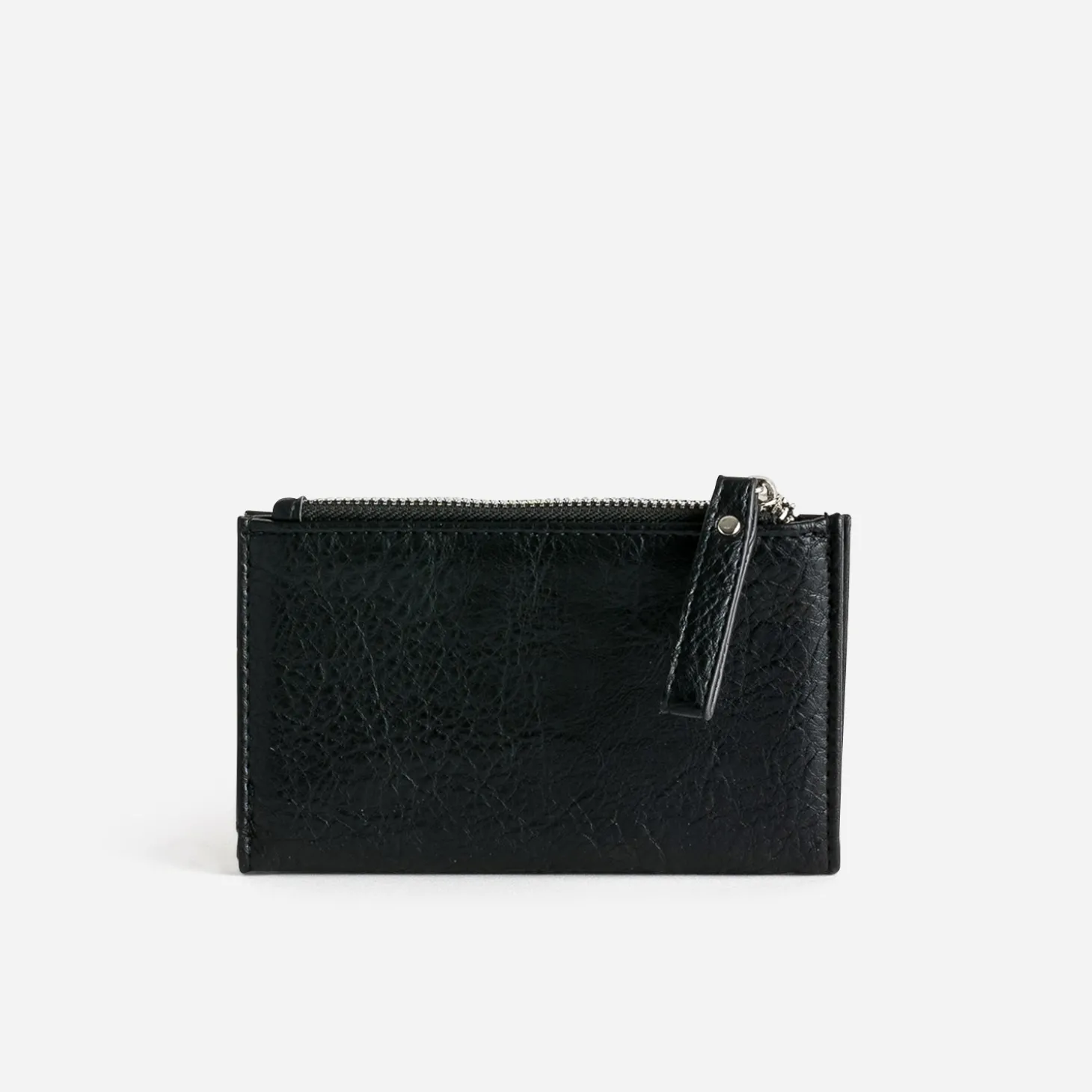 Ce portefeuille séduit par sa forme plate, facile à glisser dans la poche interne d’une veste ou la poche arrière d’un pantalon. En matière synthétique noire, il comporte un compartiment zippé pour la monnaie, et s’ouvre, grâce à une pression, sur huit fentes pour cartes, un compartiment pour billet et deux compartiments.