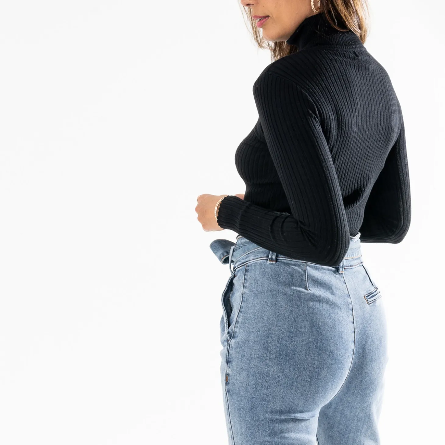 Le pull à col roulé en tricot côtelé, appelé aussi pull chaussette, fait un retour remarqué. Il se porte près du corps, seul ou sous une chemise. Appréciez son coloris noir, élégant et intemporel.