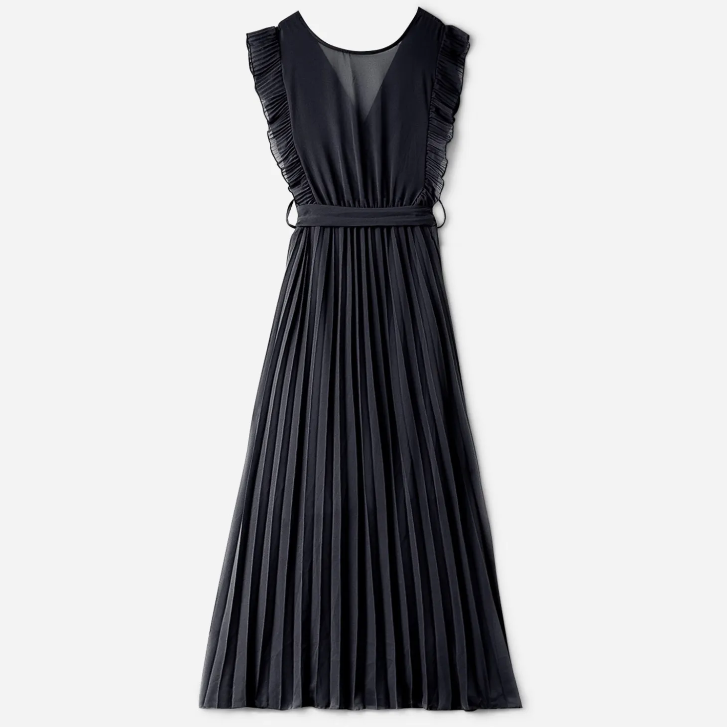 La robe longue reste la pièce des cérémonies et de tous les moments d’exception, où l’élégance est de mise. Déclinée en coloris noir, elle s’autorise des jeu de plissé étudiés. Un modèle à porter avec ou sans ceinture, avec ou sans talon.