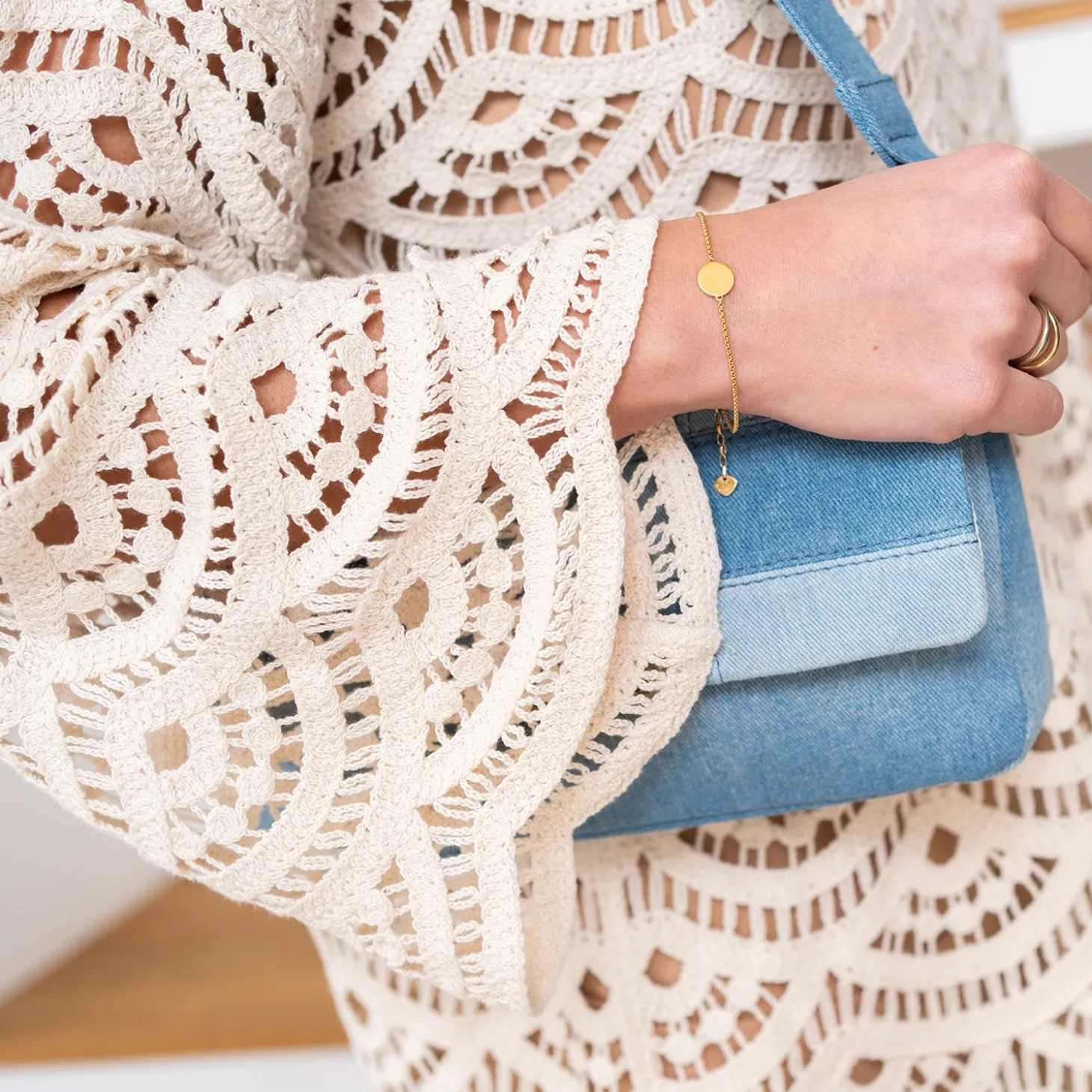 Laissez convaincre par l’incroyable potentiel mode de cette robe en macramé. En coton écru, elle se porte, en journée, esprit robe de plage sur un maillot de bain, et en soirée, avec un dessous de robe ivoire, une capeline et des sandales dorées à talon.